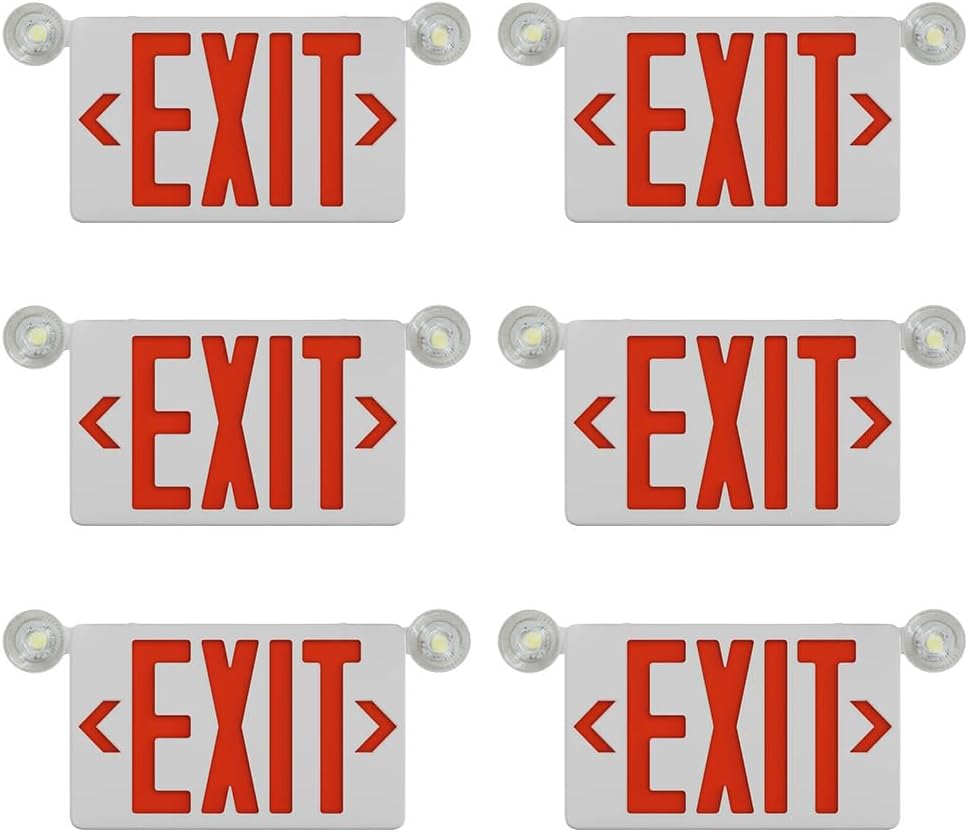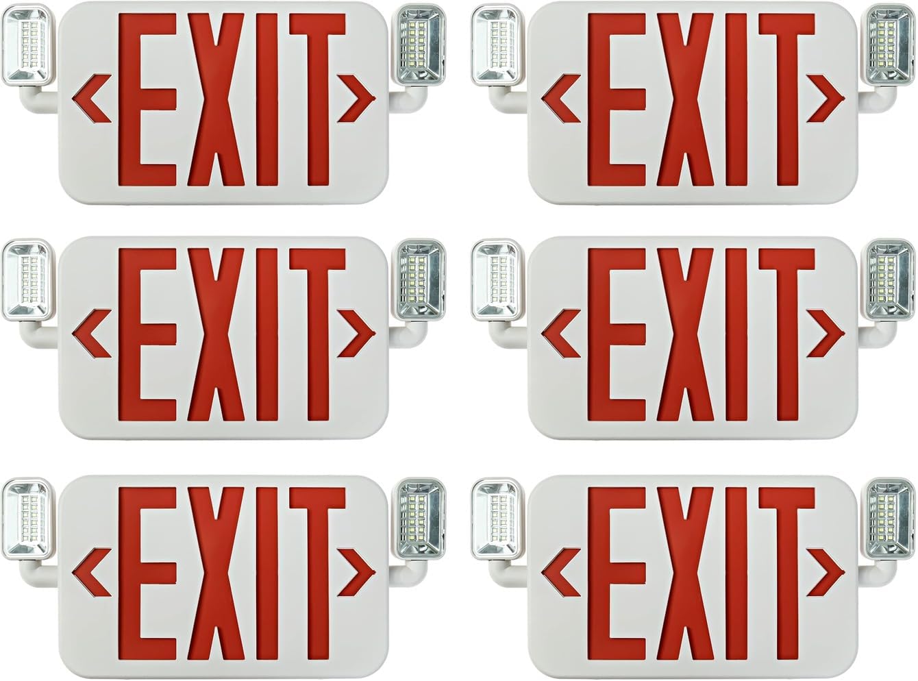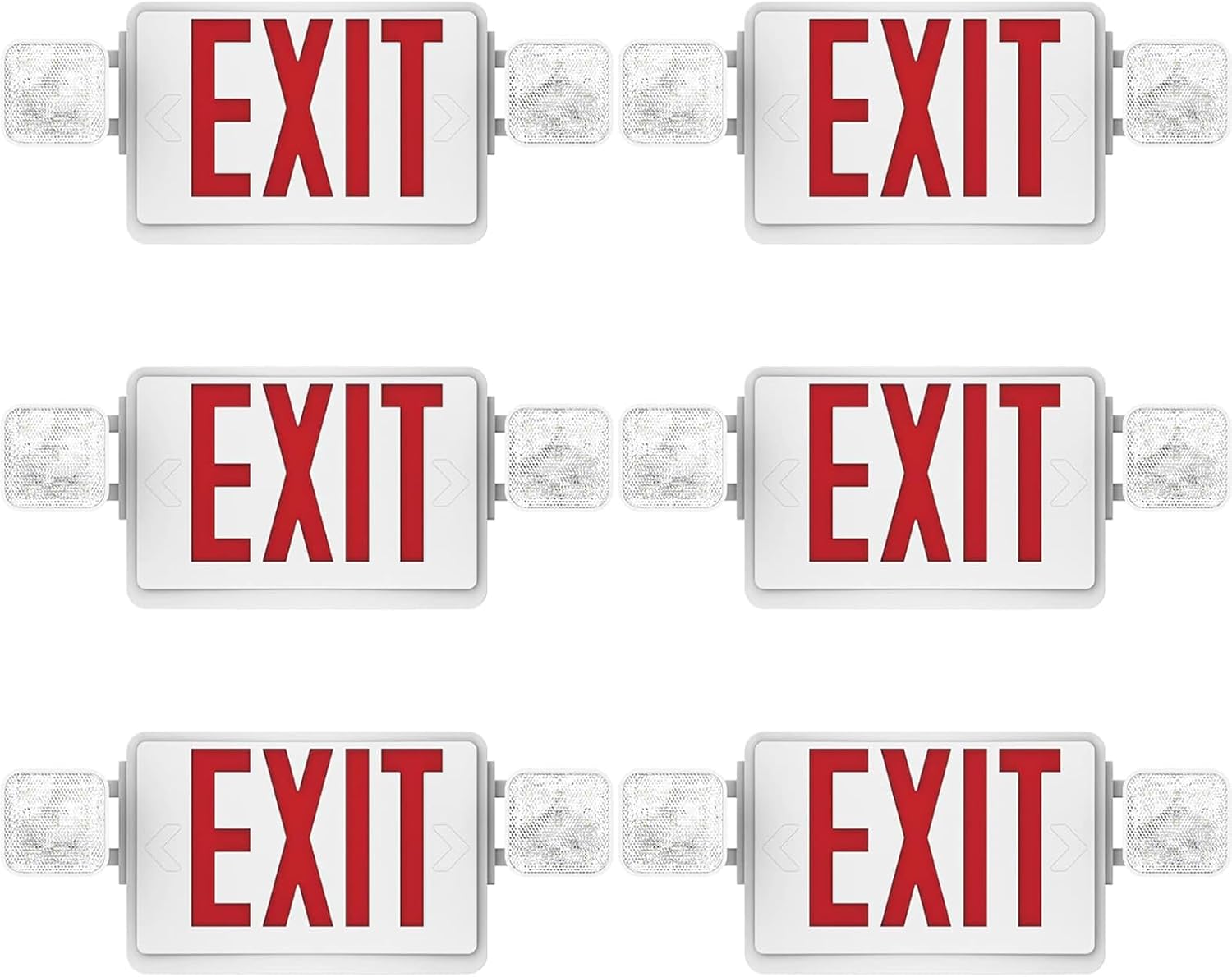 Ciata 6 Pack Ultra Bright Led Decorative Red Exit Sign & Emergency Light Combo with Battery Backup, Fire Exit Sign with Lights, Lighted Exit Signs with Battery Backup, 6-inch Red Letters