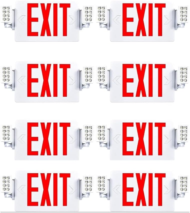 8 Pack Double Sided LED Emergency EXIT Sign Combo, Two LED Lights, Backup Battery, US Standard Red Letter Emergency Exit Lighting, Commercial Grade, 120-277V, Fire Resistant (UL 94V-0)