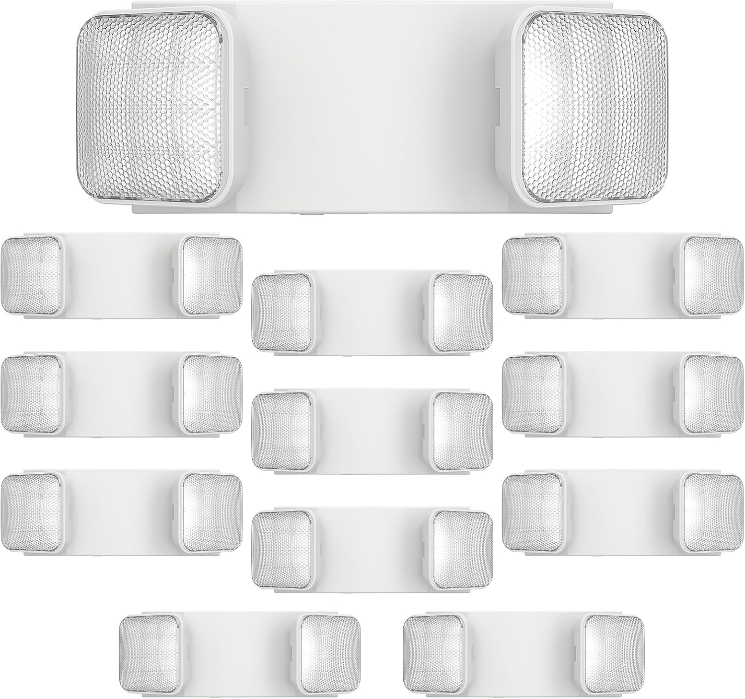 12 Pack Commercial LED Emergency Lights Fixture, Emergency Light with Battery Backup, Emergency Lights for Business Home power Failure, Two Adjustable Head Emergency Lighting, Hardwired 120-277V
