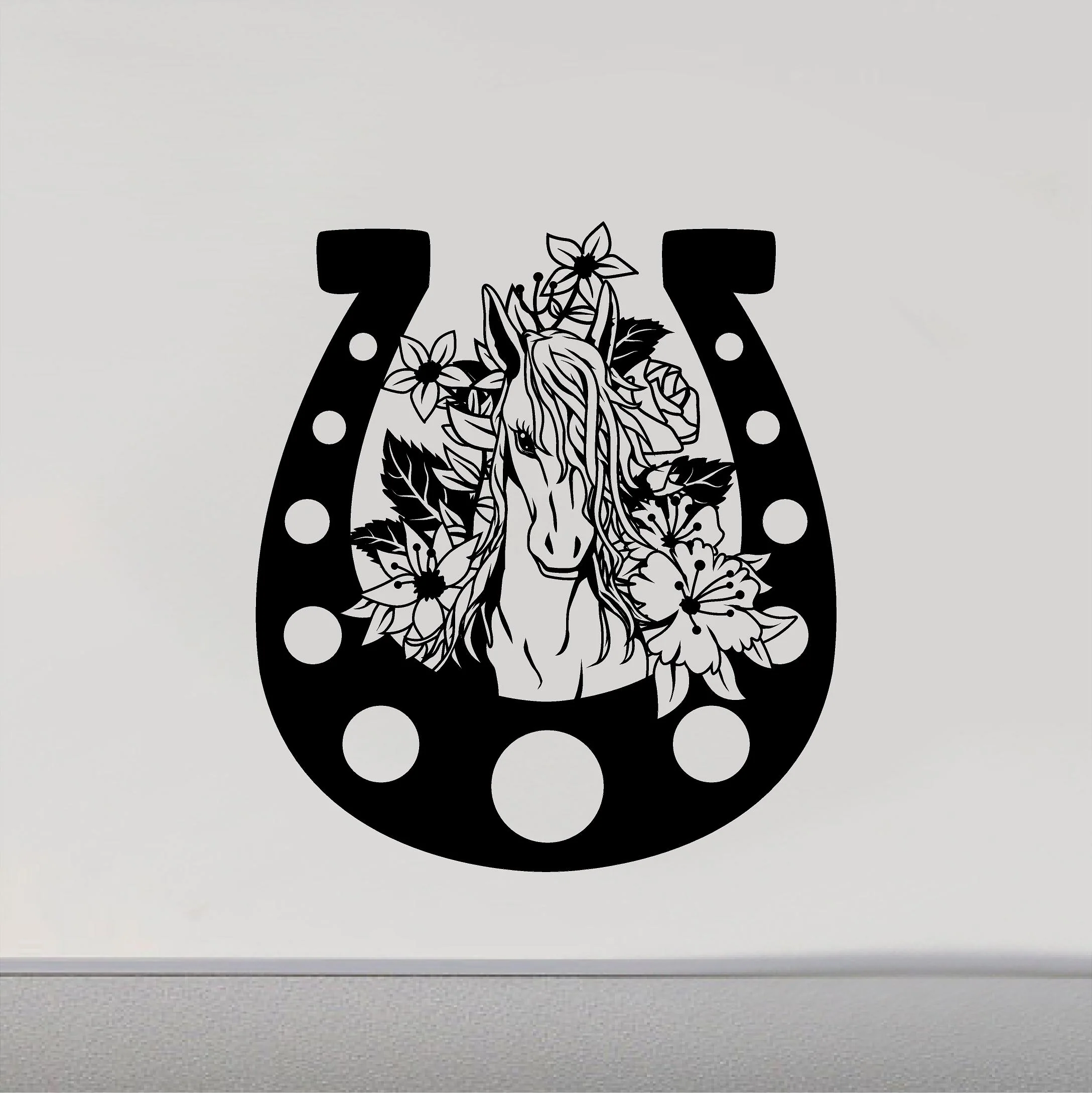Horse Shoe Flower Decal Sticker for Equestrian Enthusiasts - CF222