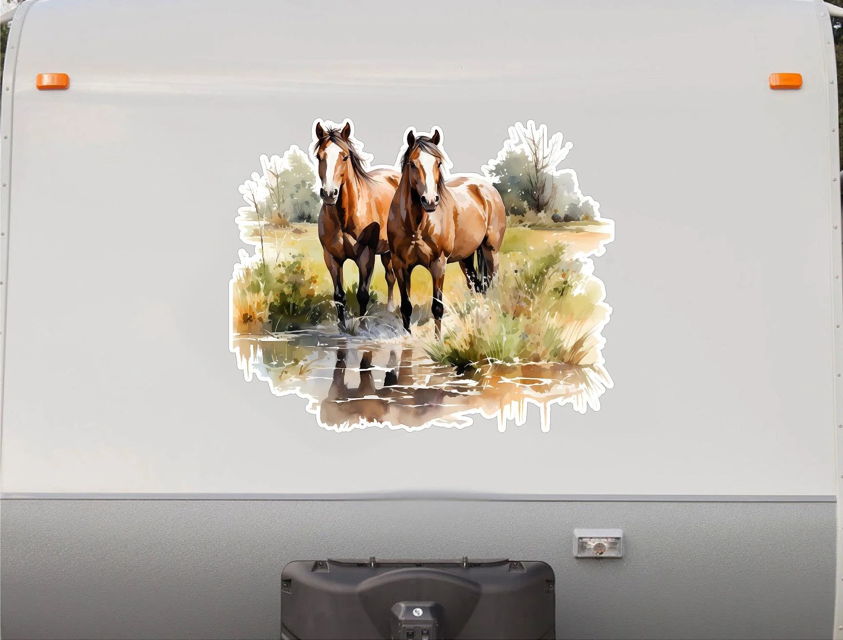 Watercolor Horses RV Decal - 18x22 Inch Camper & Trailer Sticker (H01B)