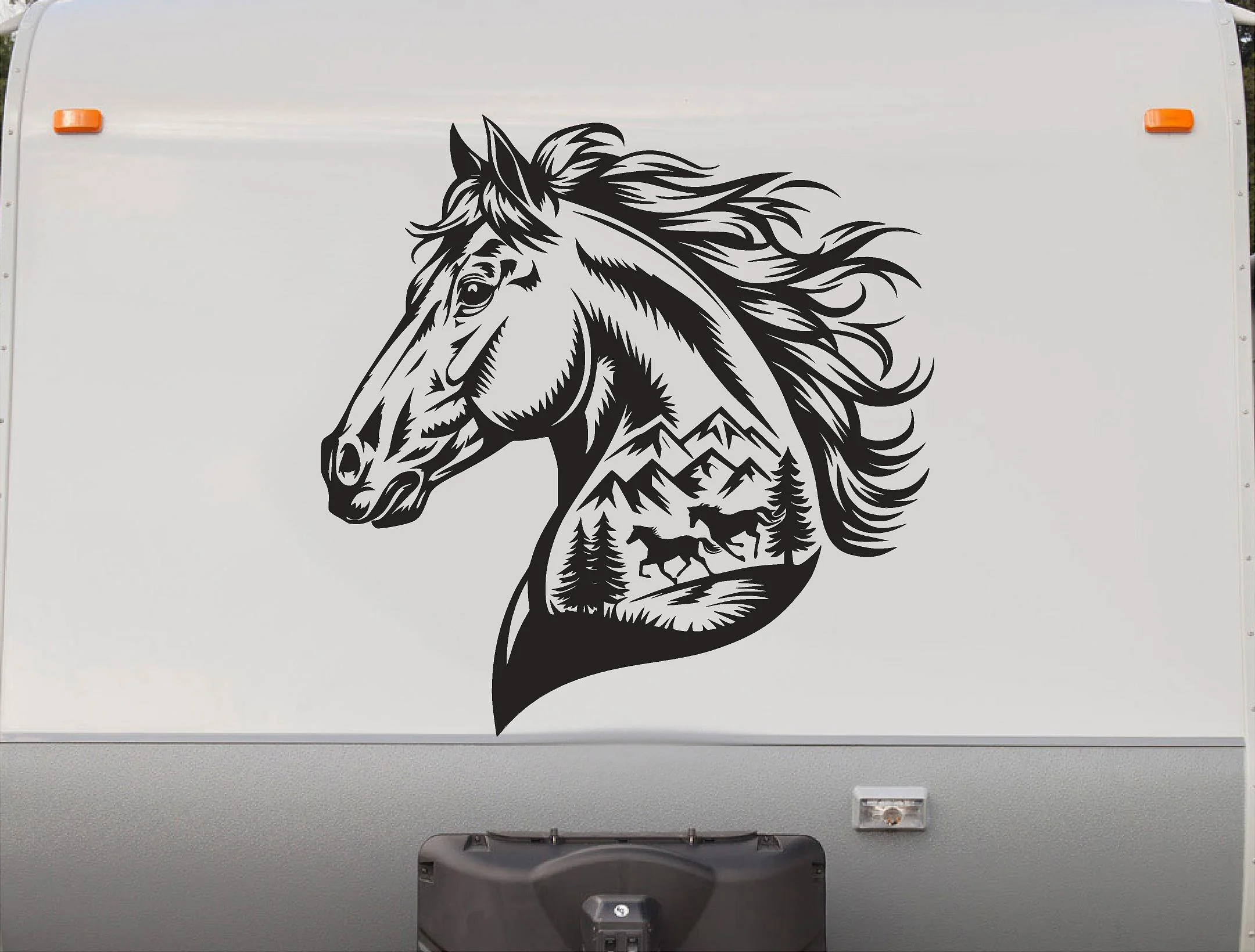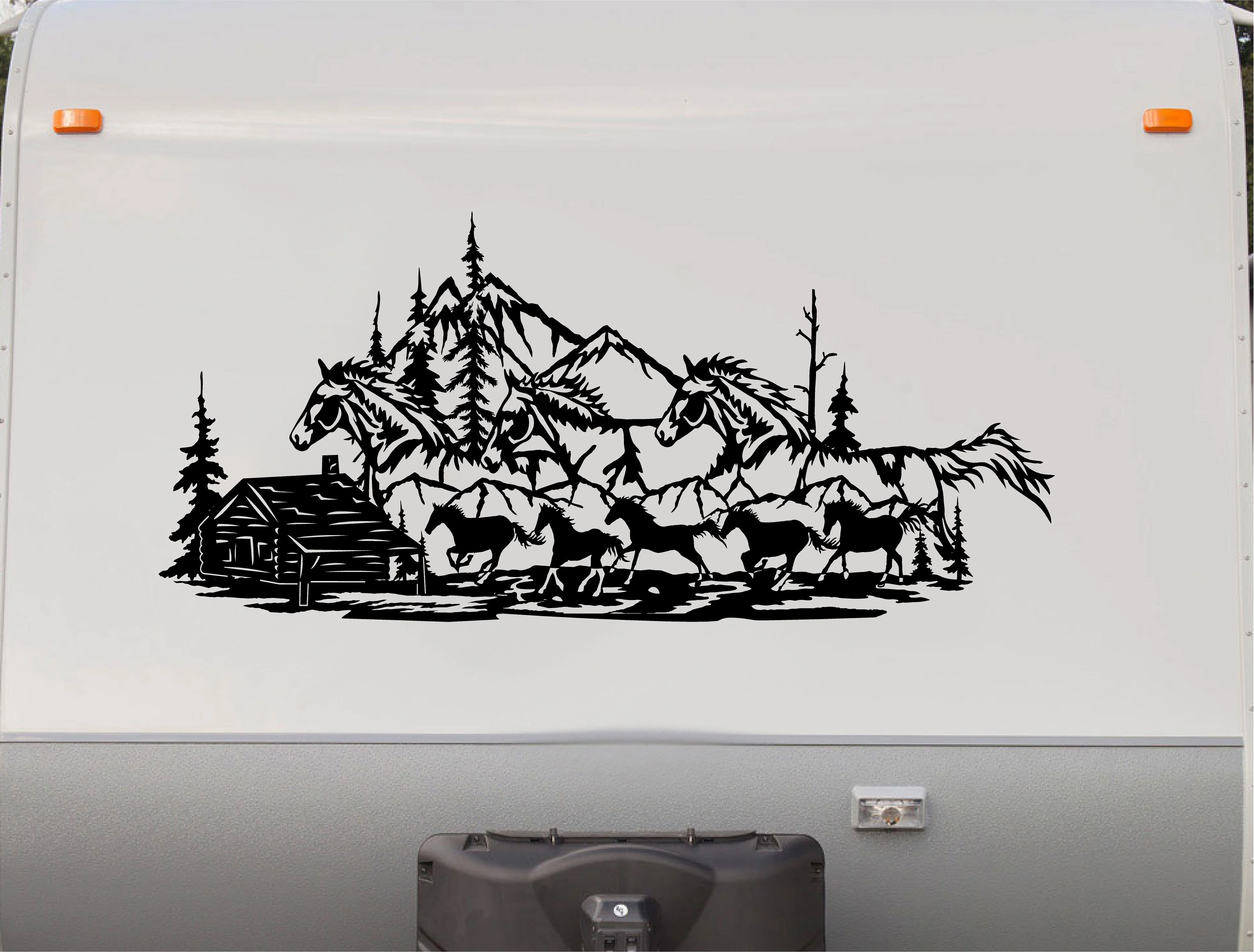 Horse and Mountain Camper Trailer Decals - CRV04 Replacement Stickers