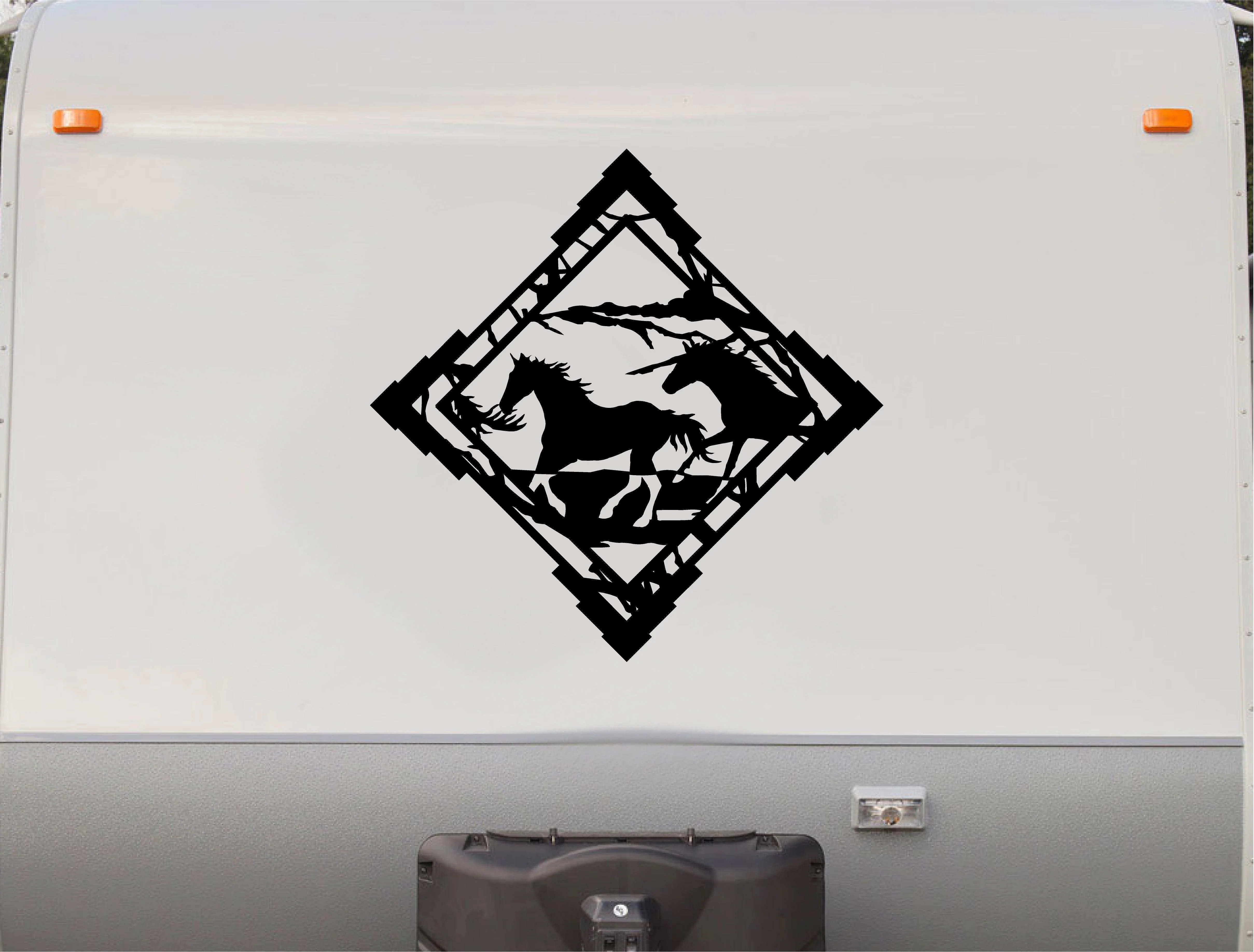 Equestrian RV Camper Vinyl Decal Sticker - Horse Scene