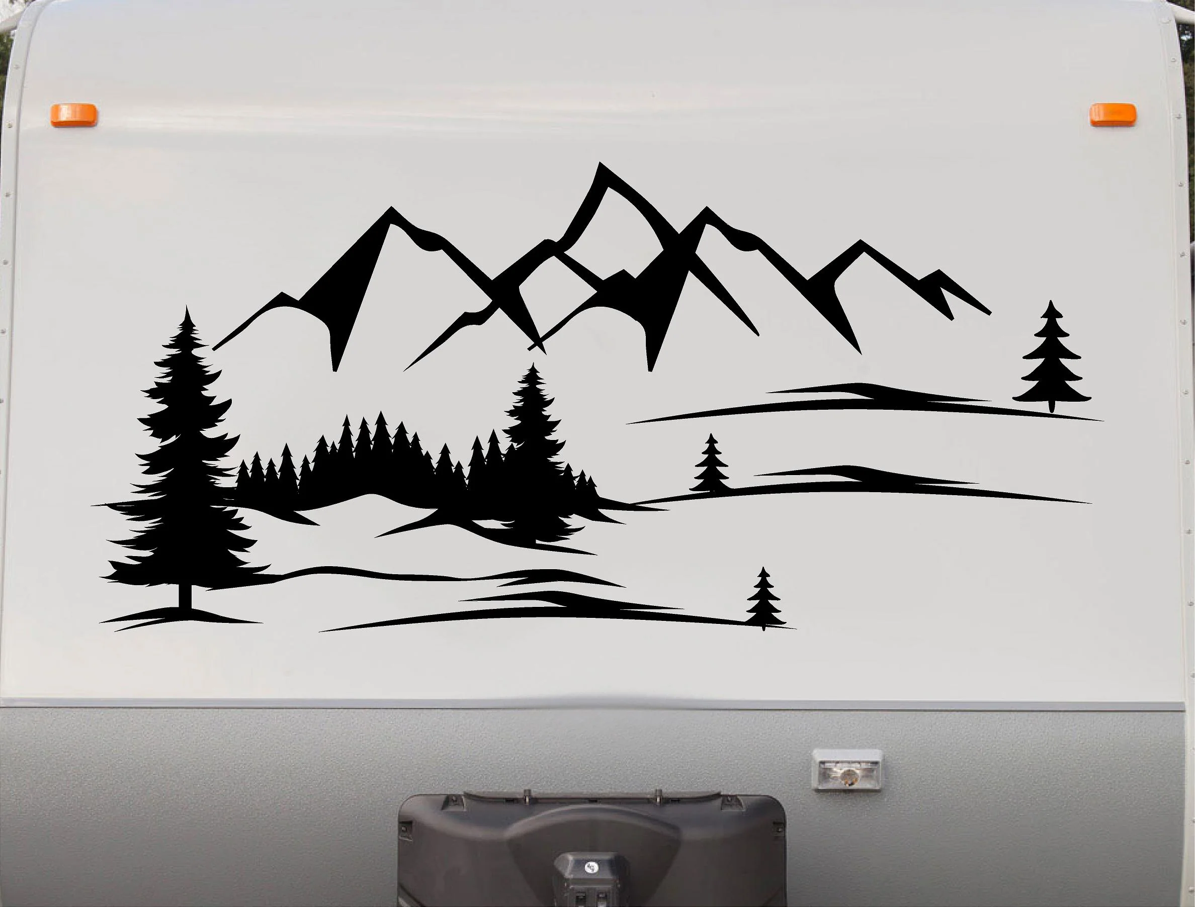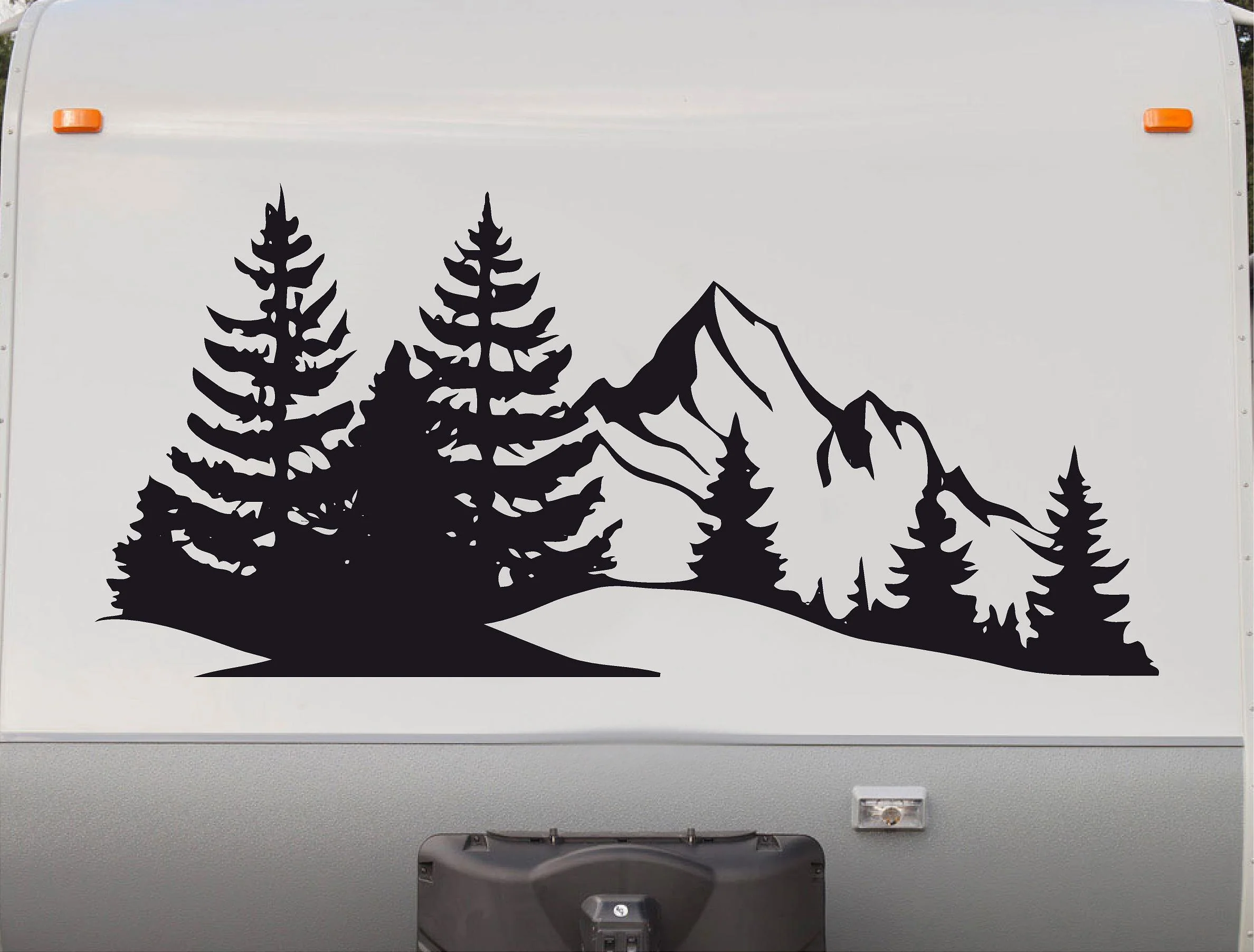 Mountain Range Camping RV Decal - Scenic Vinyl Sticker by StickerChef