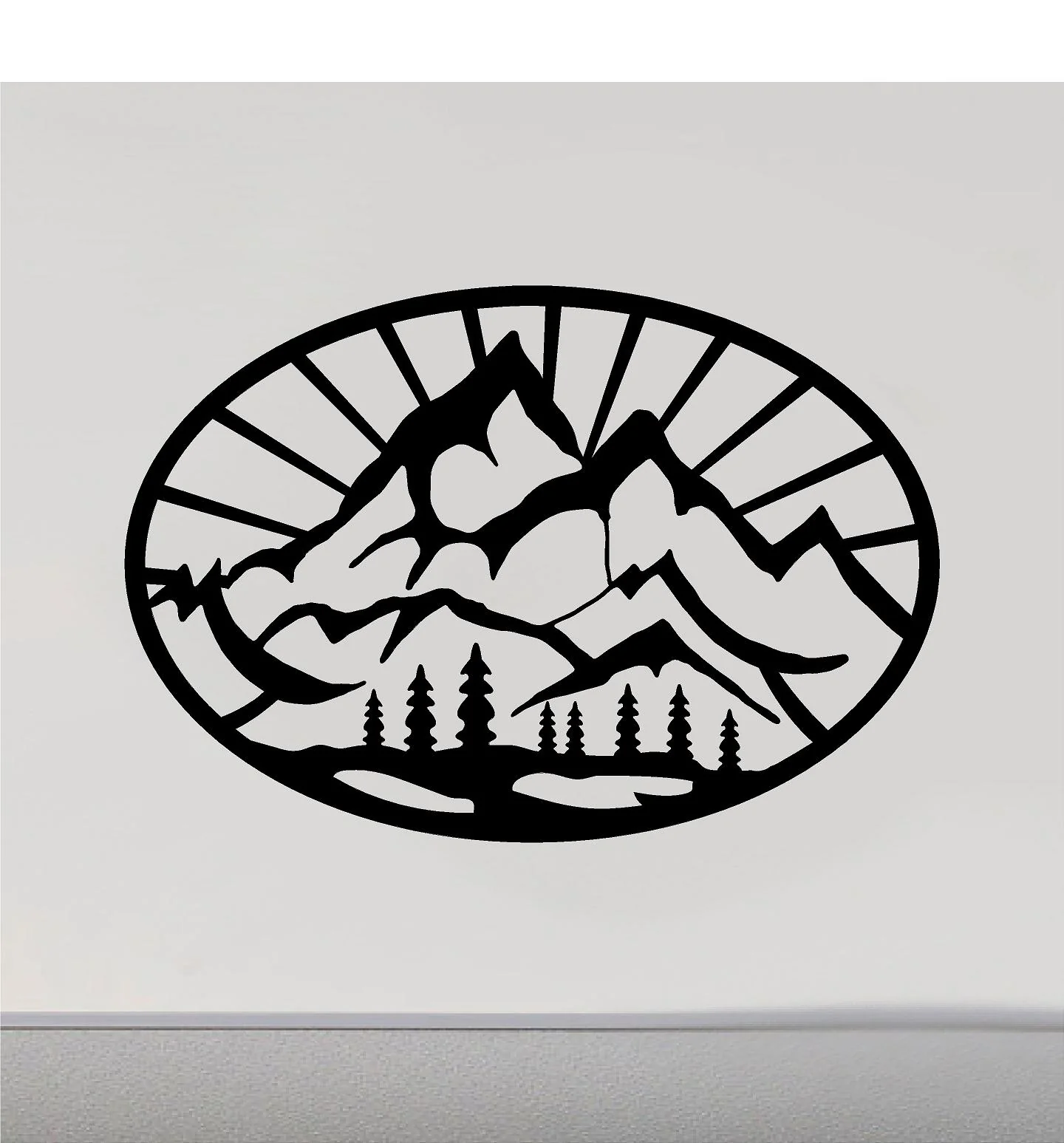 Mountains Sun Rays RV Door Sticker Camping Decor for Campers Trailers