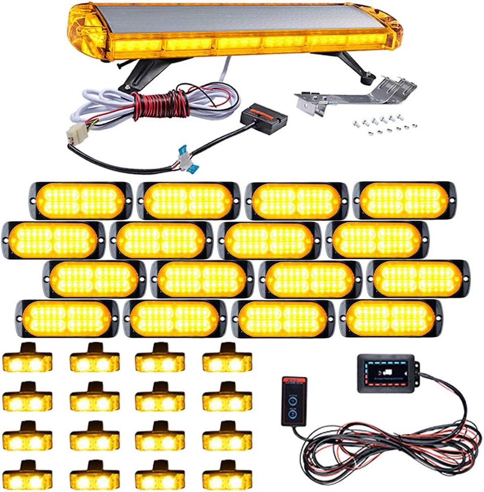 47 inch (mber 22 COB LED Warning Emergency Strobe Light Bar + 8pcs Ultra Slim 12-LED Flashing + 8pcs 2-LED Grille Flash Lamps with Clips Control Box Kit Recovery Car Tow Truck Response Plow