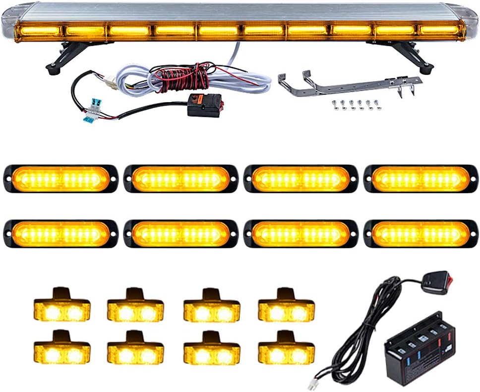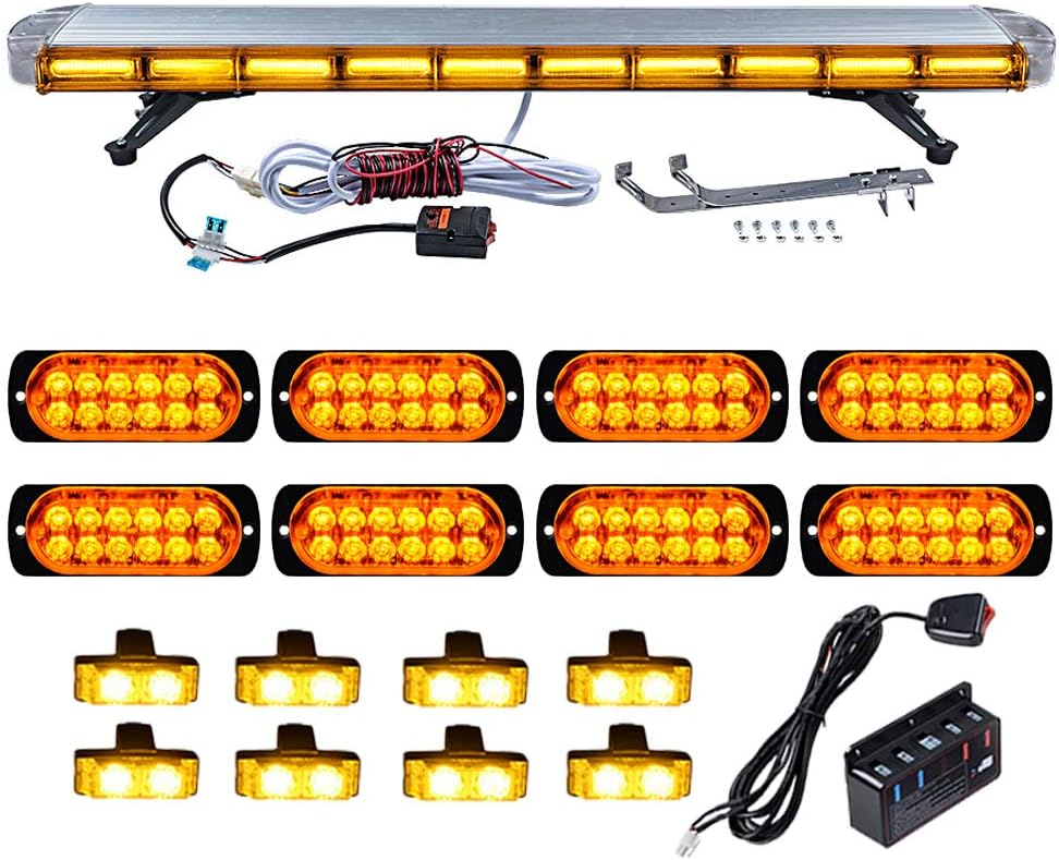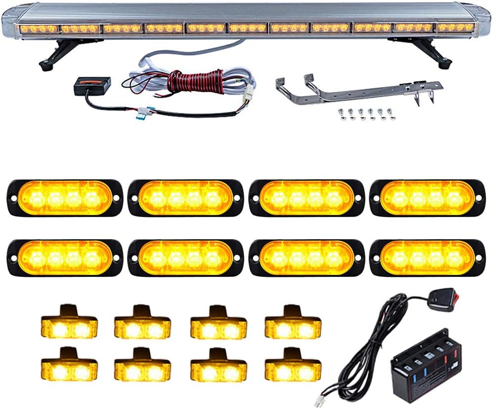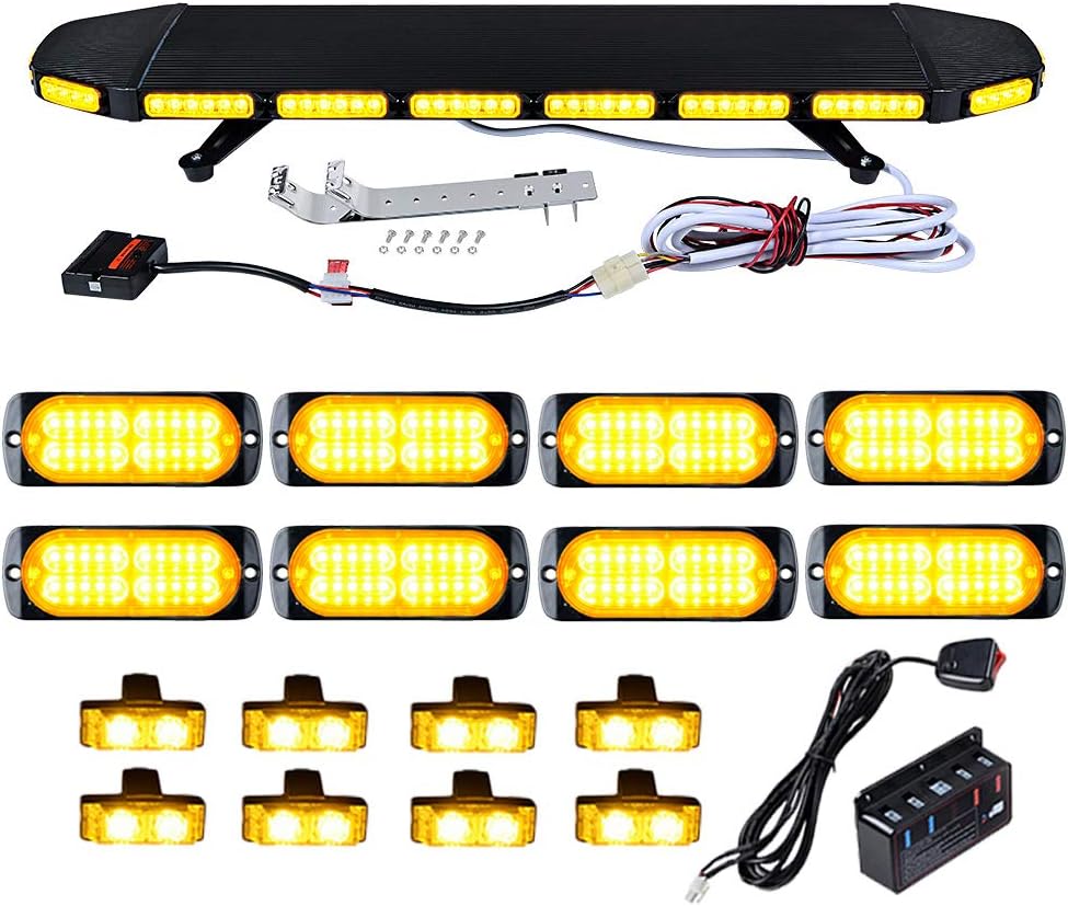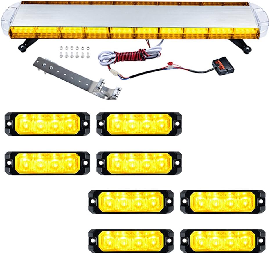 Set 1pc Amber 47 inch (8-LED Emergency Warning Beacon Tow Truck Plow Response Strobe Light Bar + 8pcs 4-LED Caution Utility SYNC Flashing Strobe Light Bar