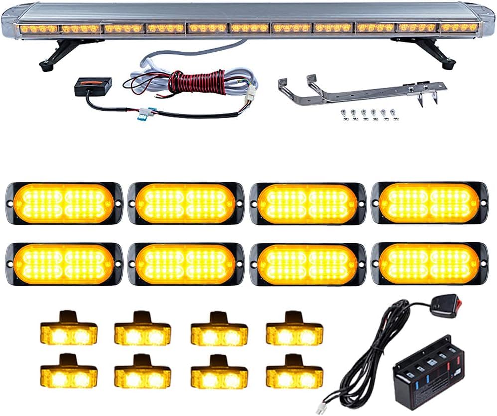 Astra Depot 51 inch (mber 96 LED Warning Emergency Strobe Light Bar + 8pcs Ultra Slim 20-LED Flashing + 8pcs 2-LED Grille Flash Lamps with Clips Control Box Kit Recovery Car Tow Truck Response Plow