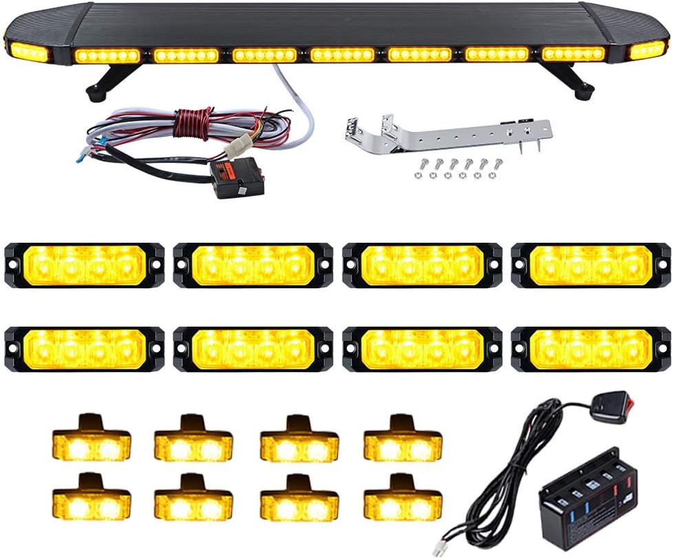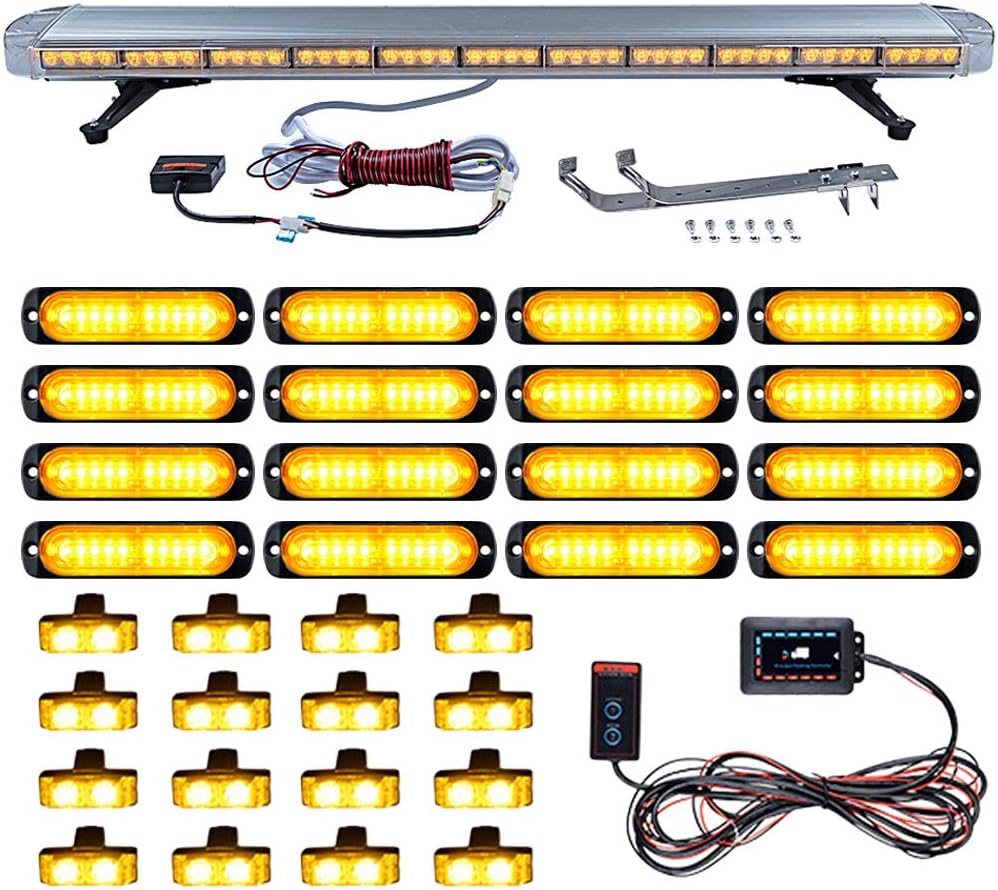 46 inch (mber 108-LED 324W Roof Top Emergency Strobe Light Bar + 8pcs SYNC 4-LED Flashing + 8pcs 2-LED Grille Flash Lamps with Clips Control Box Kit Recovery Car Tow Truck Response Plow
