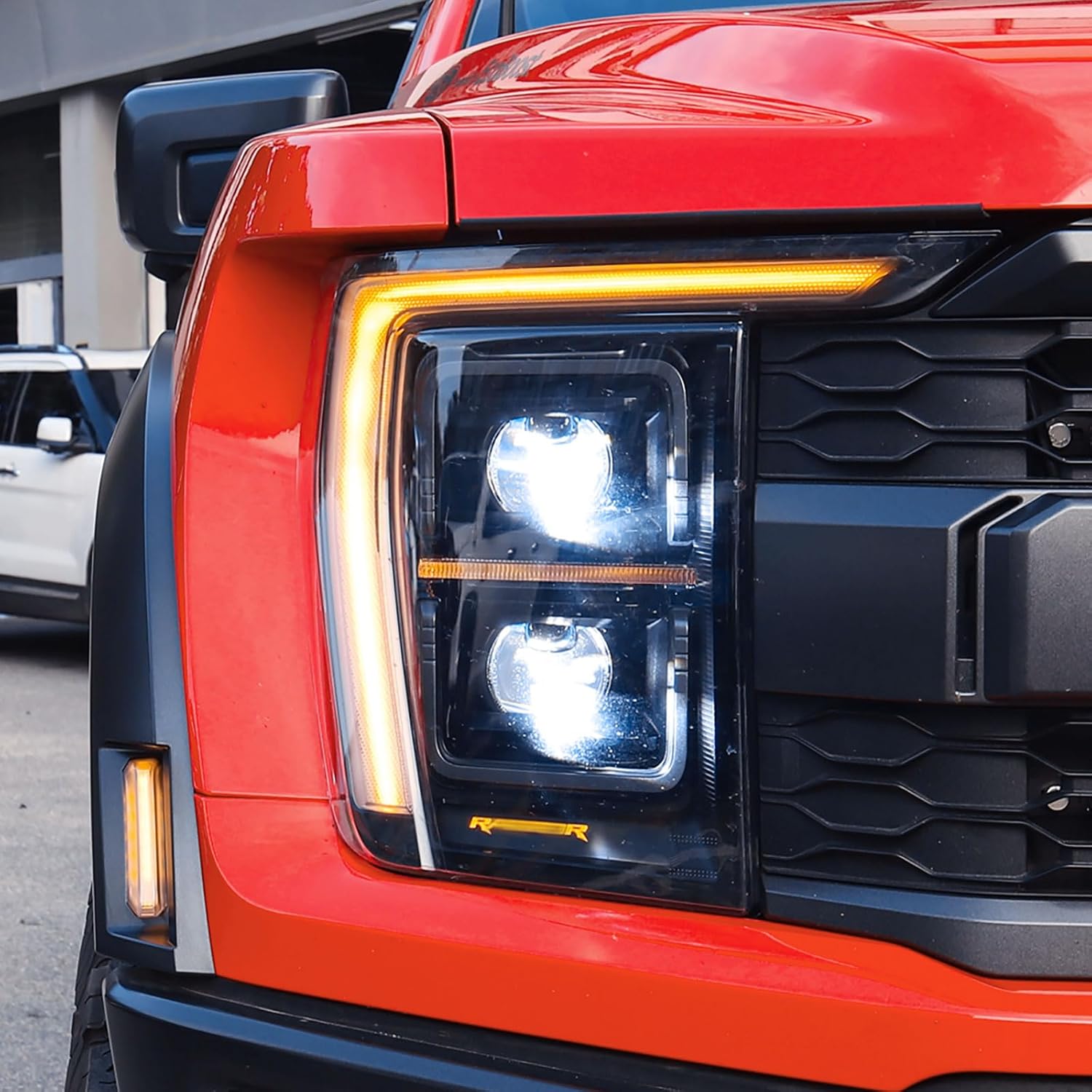 JHO LED Headlight Strips Amber DRL Style with Decorate Panel Kit for Ford F-150 Raptor 2022-2023, Gen3 Offroad