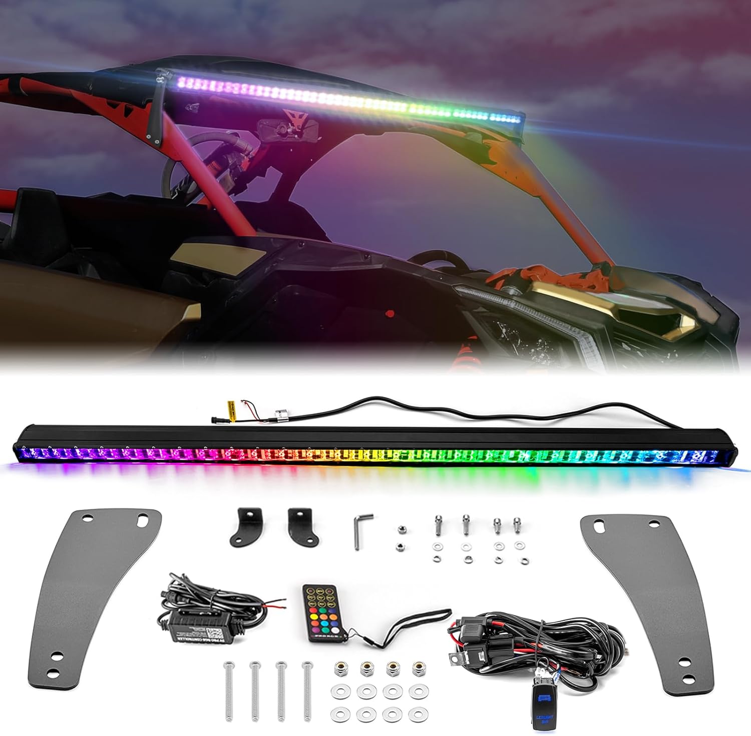 WeiSen 50'' RGBW LED Light Bar 288W Flood Spot Combo Beam with Multi-Color Chasing Color, Wiring Harness and Mounting Bracket Compatible with Can Am Maverick X3 Max 2017-2025