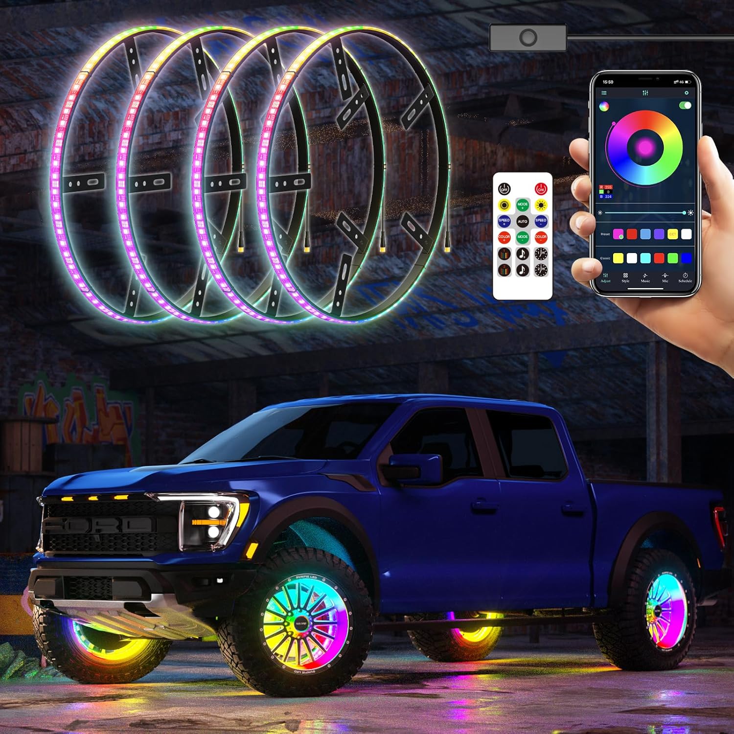 SUNPIE Wheel Lights for Truck 15.5’’ Tire Rim Lights for Trucks RGB 240 LEDs, Bluetooth & Remote Control, IP67 Waterproof, Music Sync for All Vehicle Have 18’’-19’’ Wheels