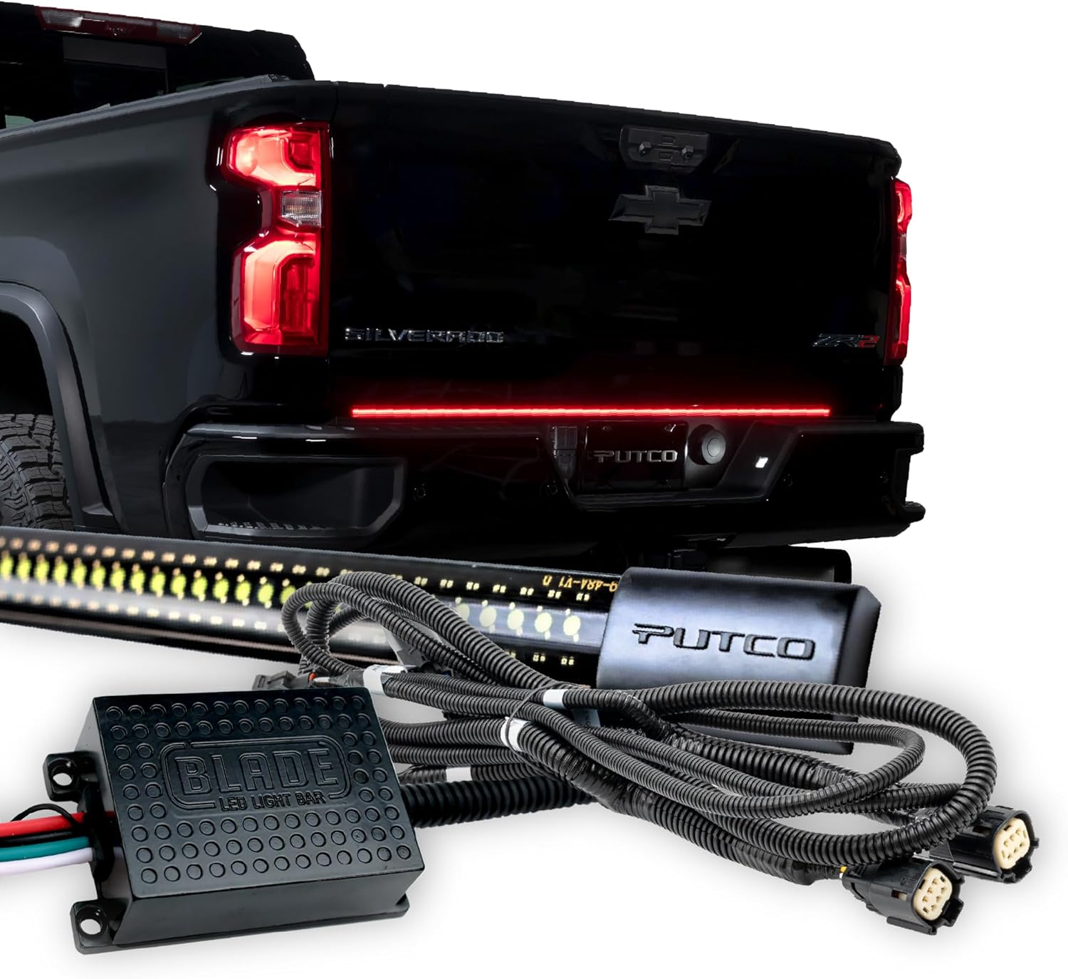 Putco 60" Blade LED Tailgate Light Bar Red/Amber/White LEDs & Plug-N-Play Quick Connect Harness - Fits Chevy Silverado/GMC Sierra 2020-2026