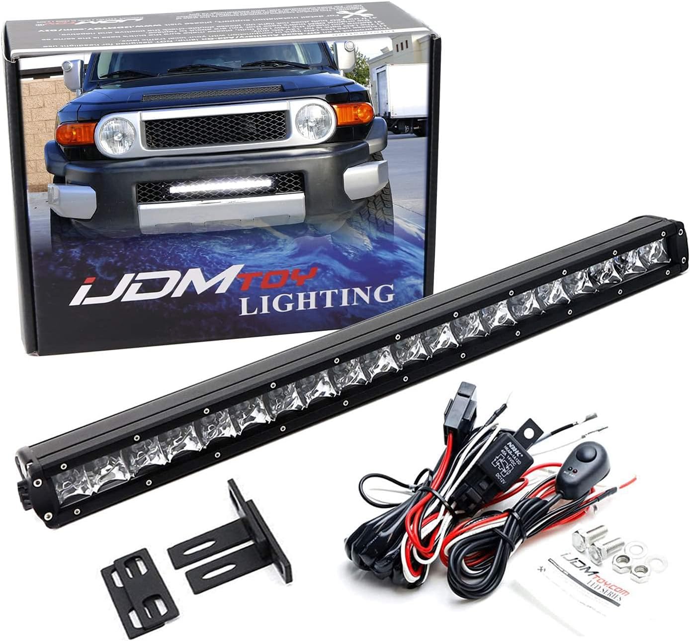 iJDMTOY Behind Lower Grille Mount 20-Inch LED Light Bar Kit Compatible with 2007-14 Toyota FJ Cruiser, Includes (1) 100W High Power LED Lightbar, Mesh Mounting Brackets & On/Off Switch Wiring