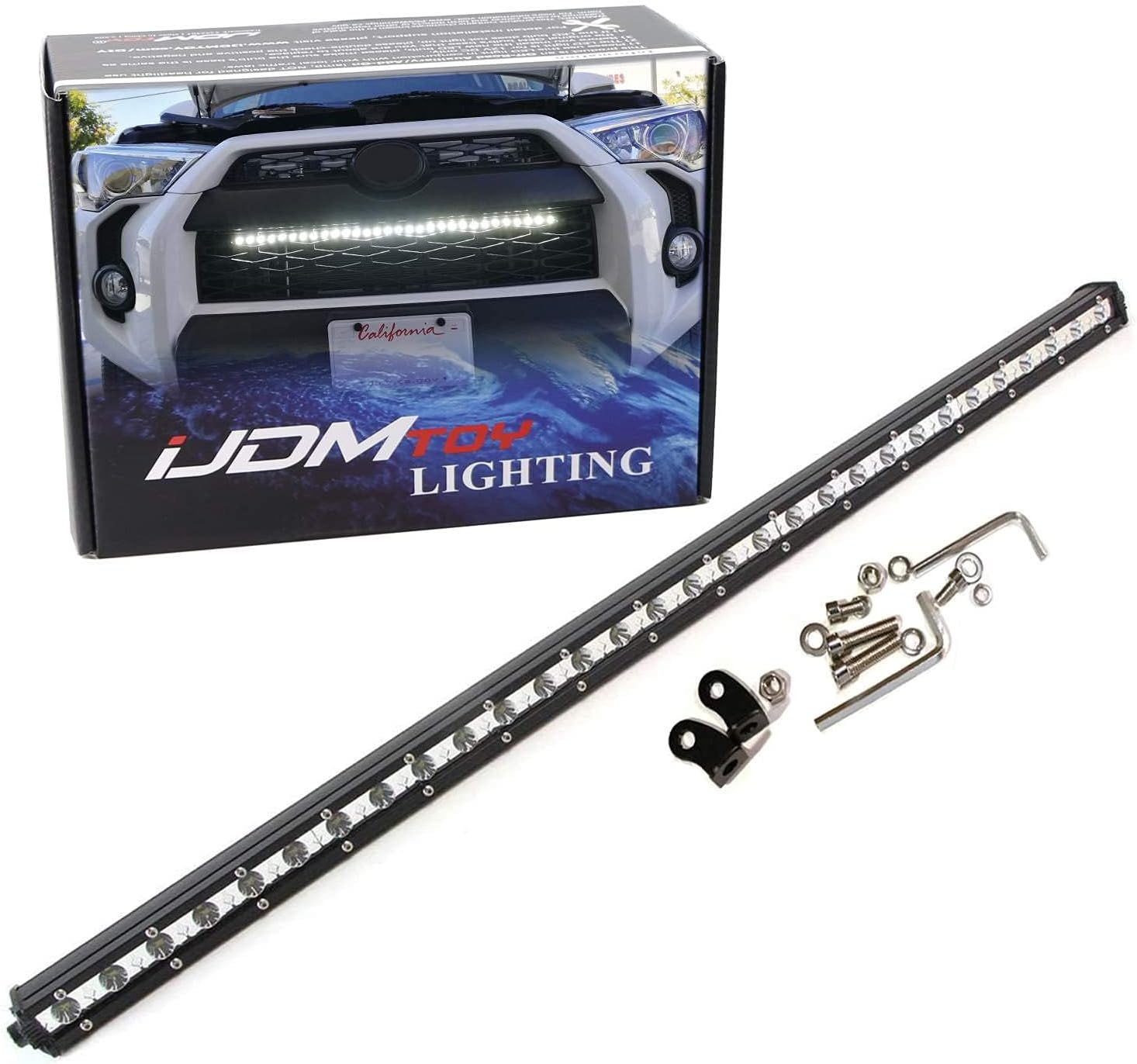iJDMTOY Behind Grille Upper Mount 32-Inch LED Ultra Slim Light Bar Kit Compatible with 2014-up Toyota 4Runner, Includes (1) 90W High Power LED Lightbar & Behind Grill Mounting Brackets