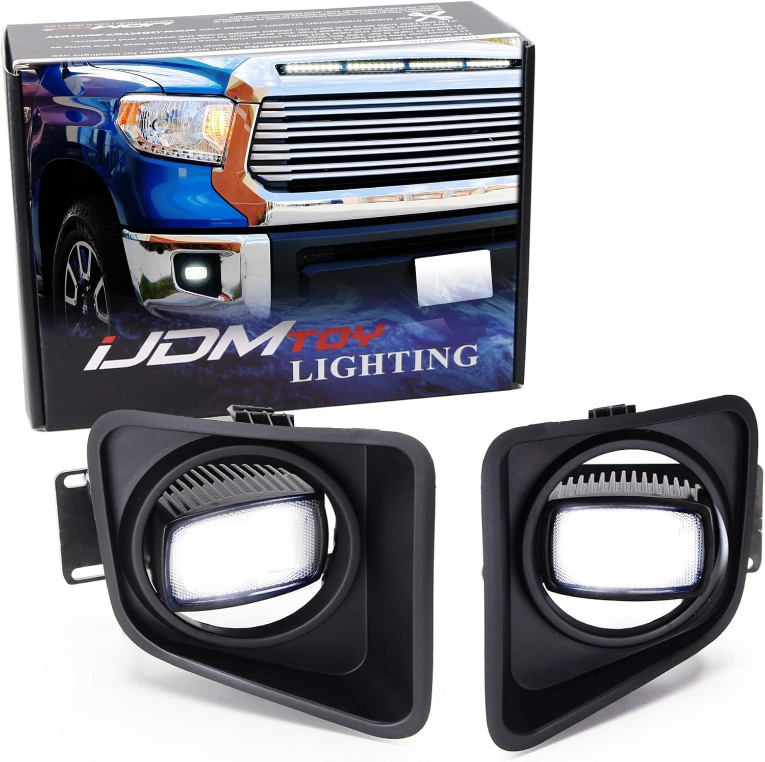iJDMTOY SR-Mini LED Fog/Driving Lamp Kit Compatible with Toyota 2014-2021 Tundra, Includes (2) 10W 1x2 LED Pod Lights, Pair of Fog Lamps Bezel Covers, Metal Mounting Brackets & Wiring Harness