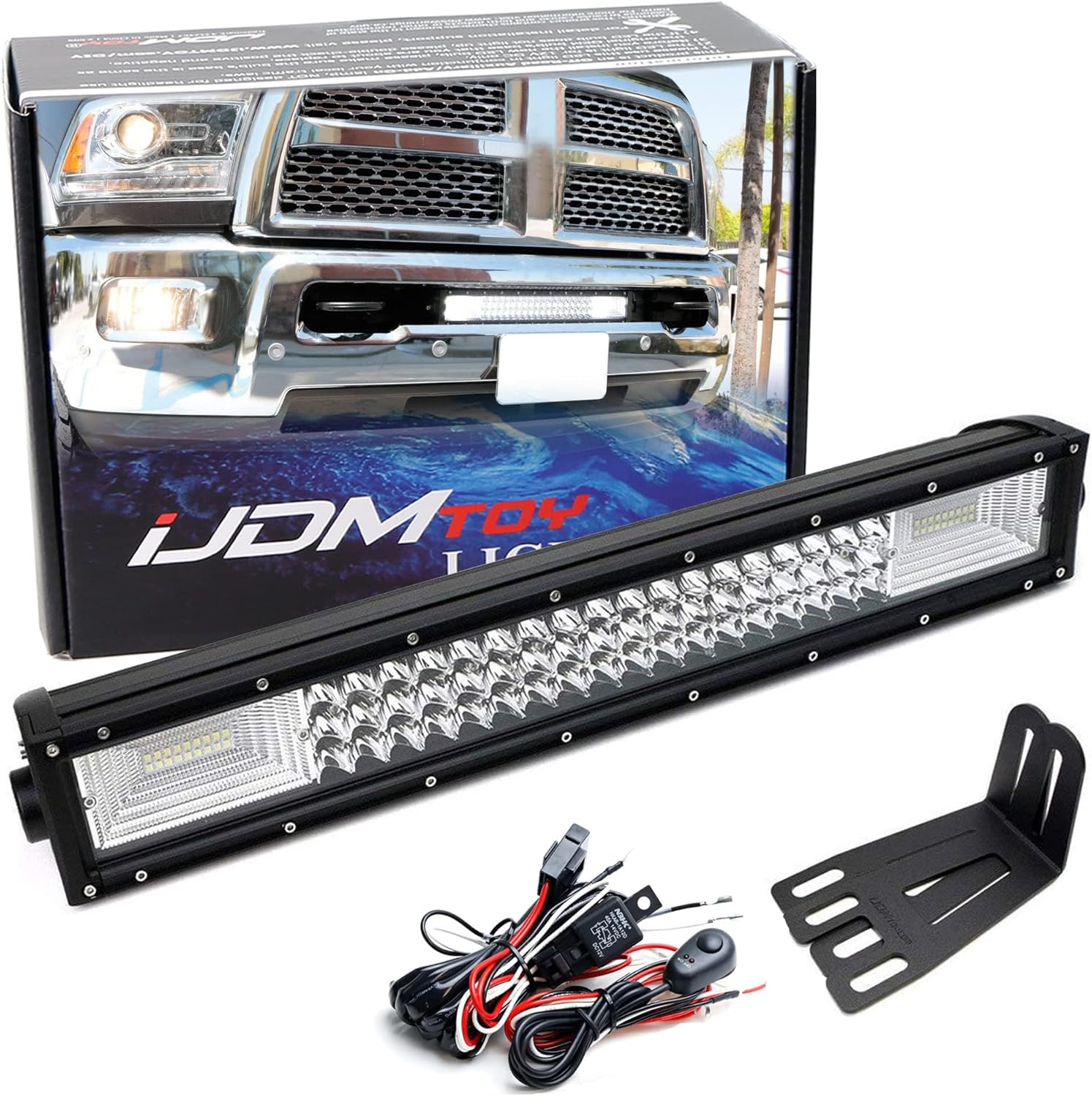 iJDMTOY Lower Grille Mount 21-Inch LED Light Bar Kit Compatible with 2009-18 Dodge RAM 2500 3500 HD, (1) Triple-Row High Power LED Lightbar, Lower Bumper Opening Mounting Brackets & Switch Wiring Kit