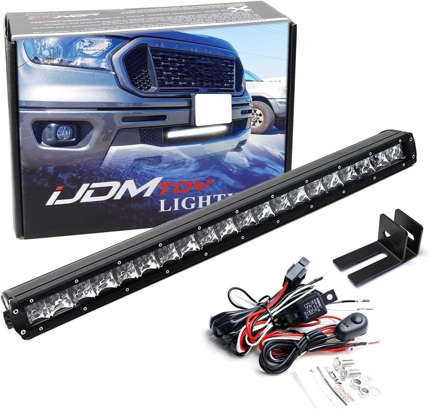 iJDMTOY Lower Grille Mount 20-Inch Single Row LED Light Bar Compatible with 2019-up Ford Ranger, Includes 100W LED Lightbar, Lower Bumper Opening Mounting Brackets & On/Off Switch Wiring Kit