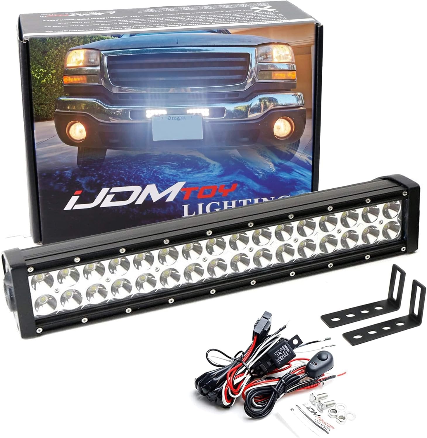 iJDMTOY Concealed Style Upper Bumper Grille Mount LED Light Bar Compatible with 2003-06 GMC Sierra 1500 2500 3500, Includes 96W High Power LED Lightbar, Mounting Brackets & On/Off Switch Wiring
