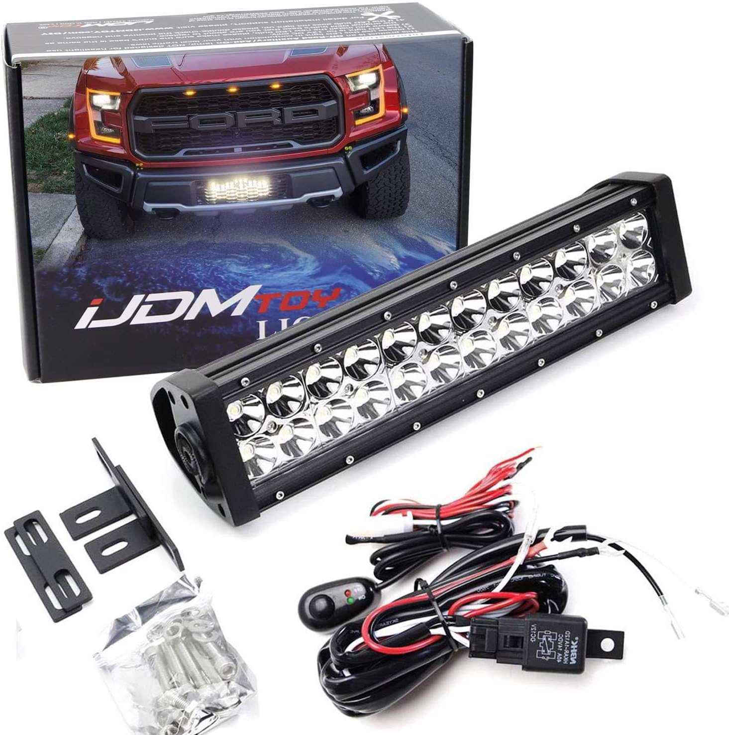 iJDMTOY Behind Grille LED Light Bar Kit Compatible with Ford 2017-2020 Raptor, Includes (1) High Power Double Row LED Lightbar, Inside Grill Mesh Mounting Brackets & Relay Wire Switch