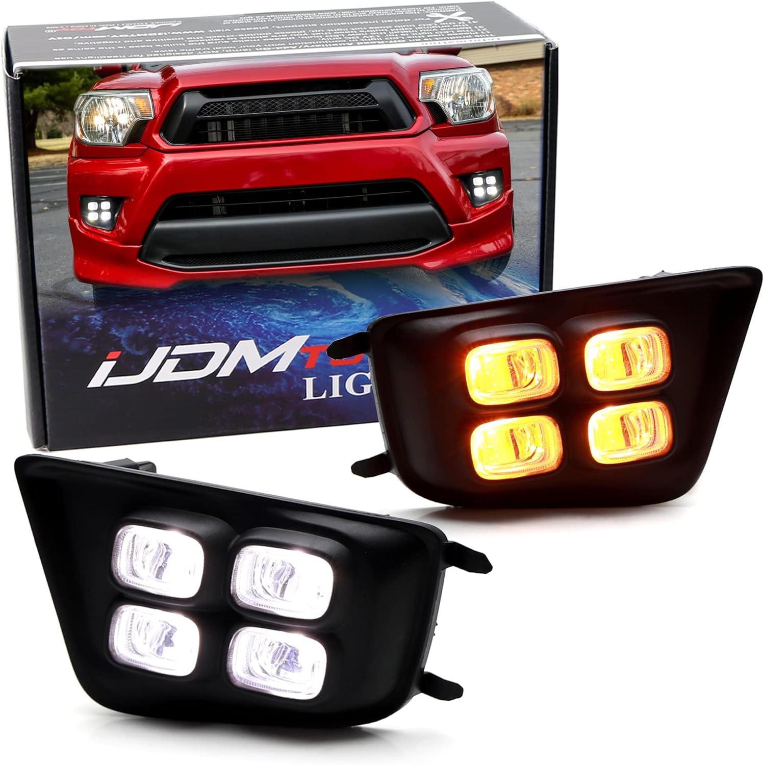 iJDMTOY Switchback LED Daytime Running Light Kit Compatible with 2012-2015 Toyota Tacoma, White/Amber LED Foglamp Bezel Replacement Assembly w/DRL Turn Signal Features