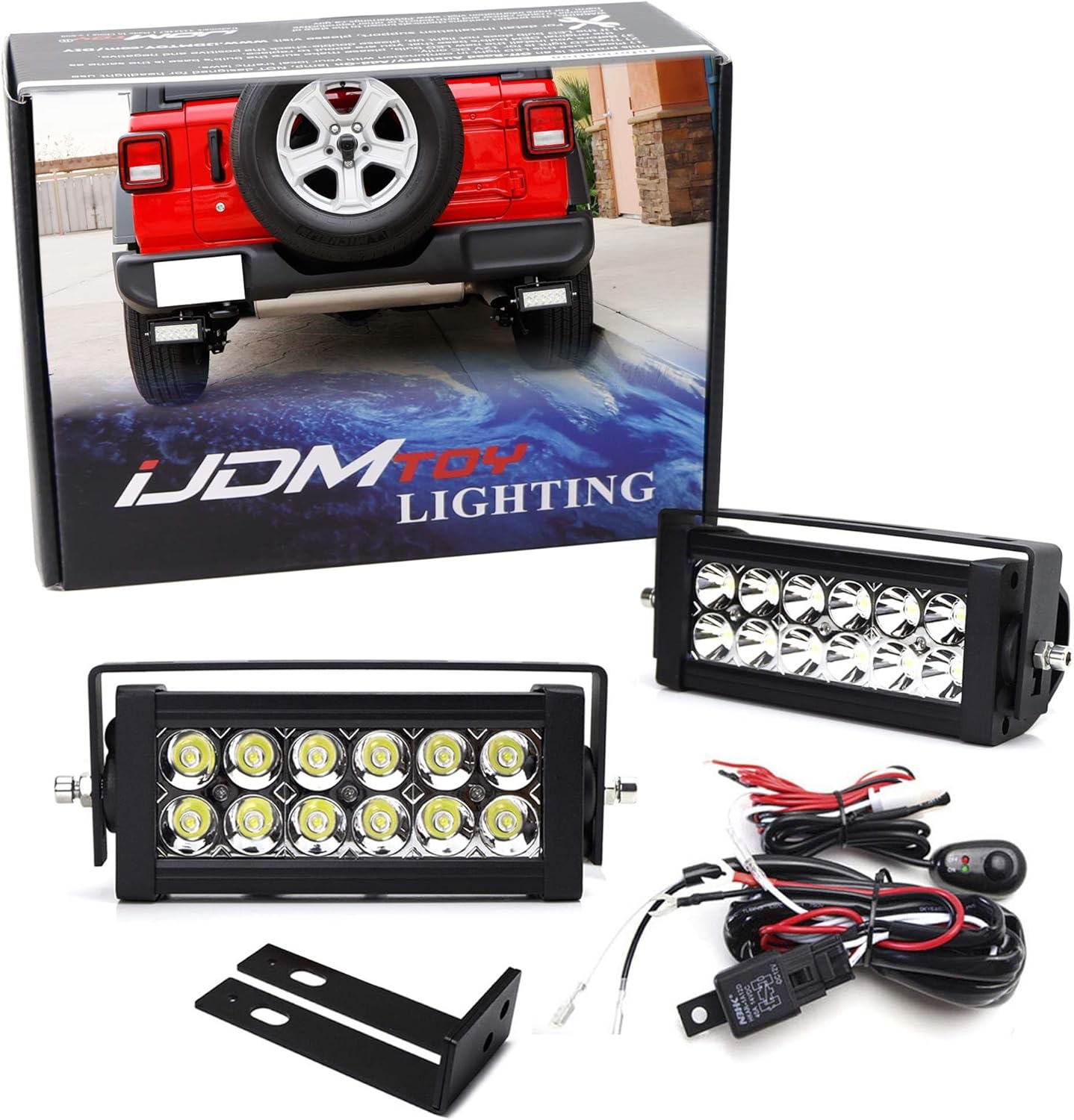 iJDMTOY Rear Bumper Mount Searchlight Reverse LED Light Bar Compatible with Jeep 2007-up Wrangler JK & JL, Includes (2) 36W High Power LED Lightbars, Bumper Frame Mount Brackets, On/Off Switch Wiring
