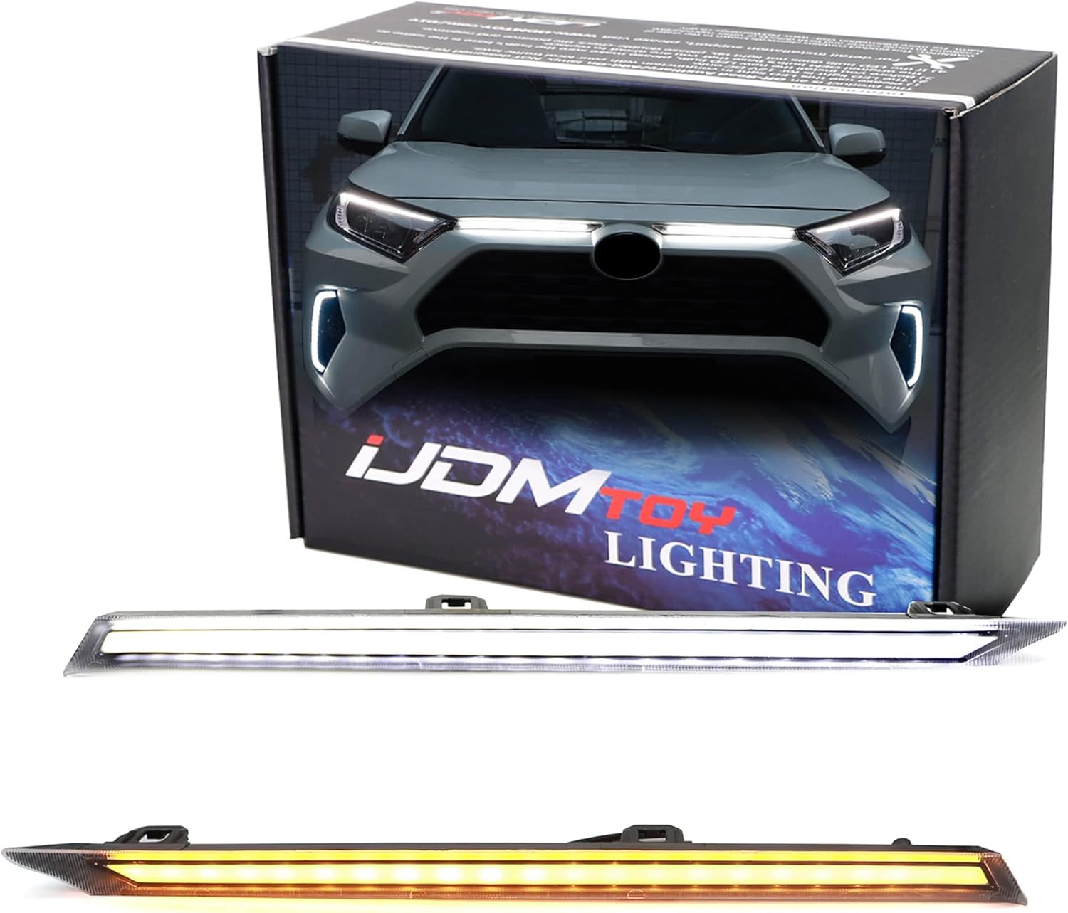 iJDMTOY Upper Grille Insert Fit Switchback LED Daytime Running Light Kit Compatible with 2019-Up Toyota RAV4, White LED DRL, Amber LED Sequential Blink Turn Signal Feature