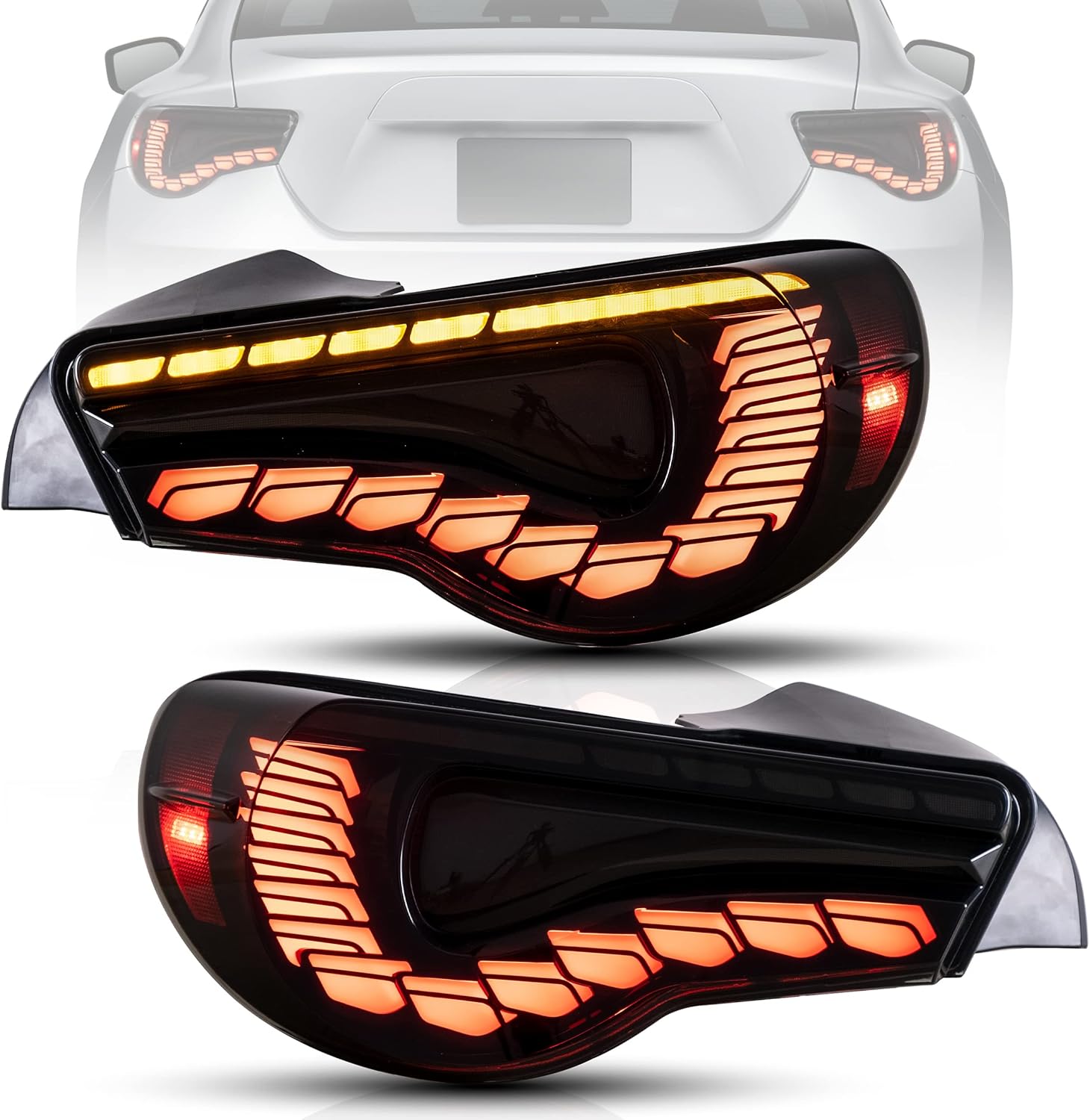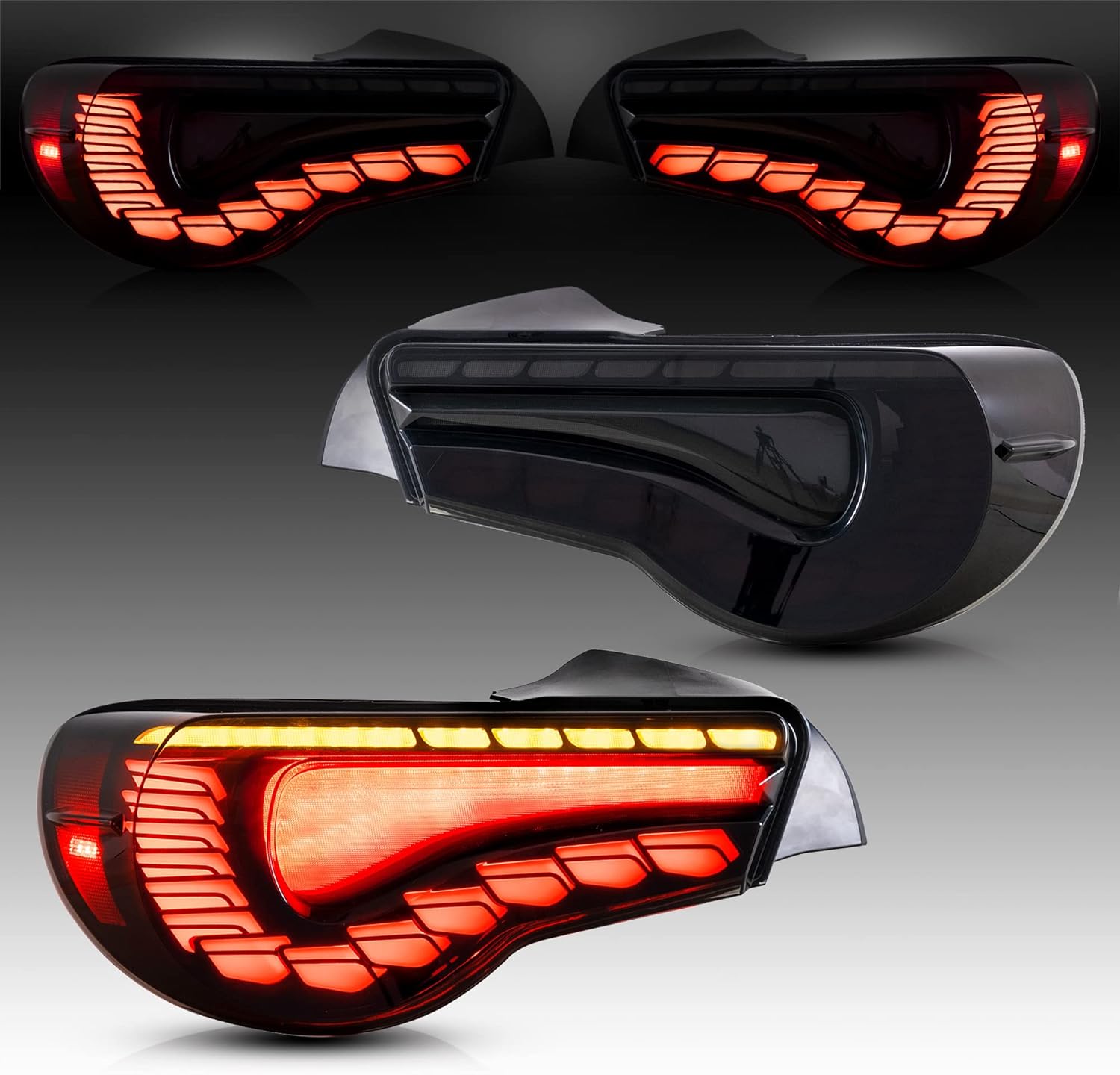 VLAND OLED Smoked Tail Lights Compatible For [Toyota 86 GT86 2012-2020 / Subaru BRZ 2013-2020 / Scion FR-S 2013-2020] With Dragon Scales Dynamic Running Light & Sequential Turn Signal Lights, SET