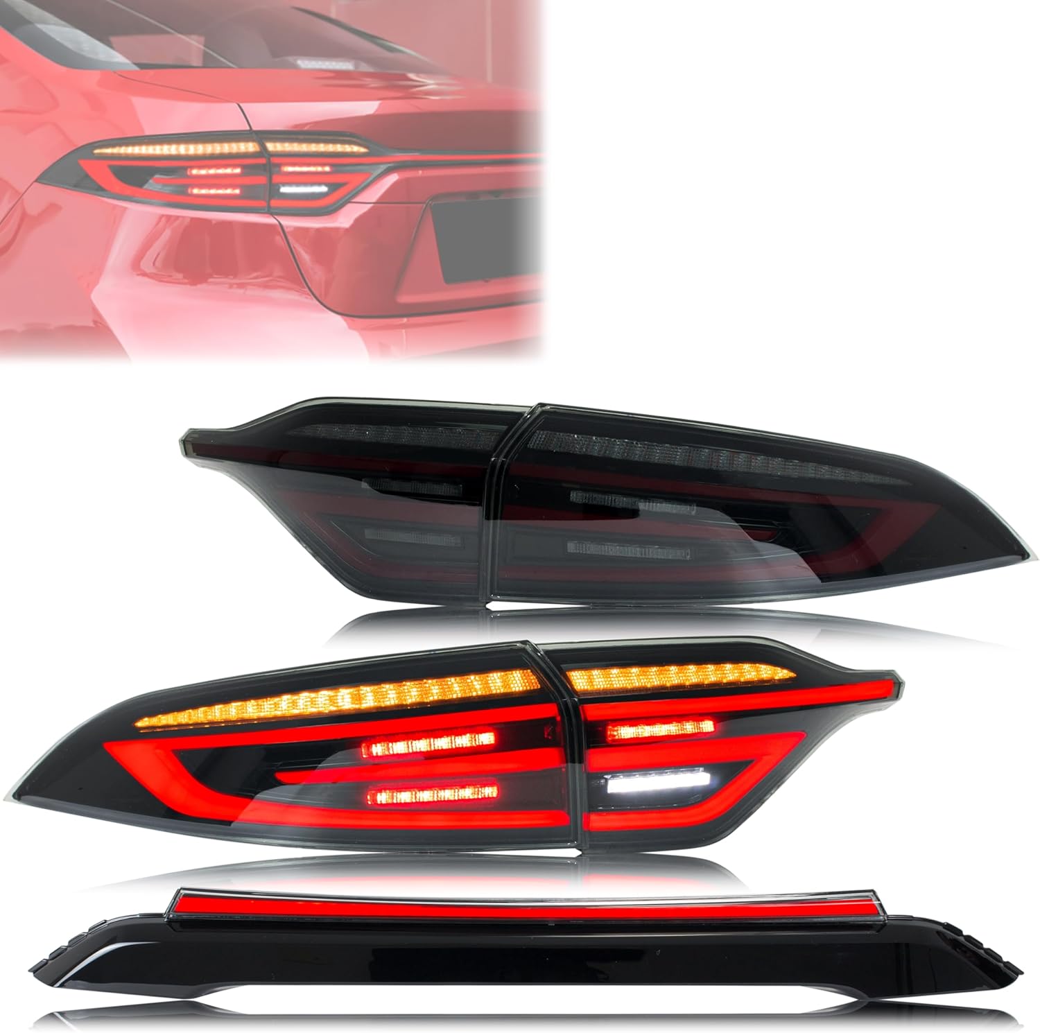 New Accessory Compatible with Toyota Corolla 2020 2021 2022 2023 2024 LED Tail Lights & Middle Lamp Sequential Signal Start-up Animation Replacement Kit Assembly (Black Red)