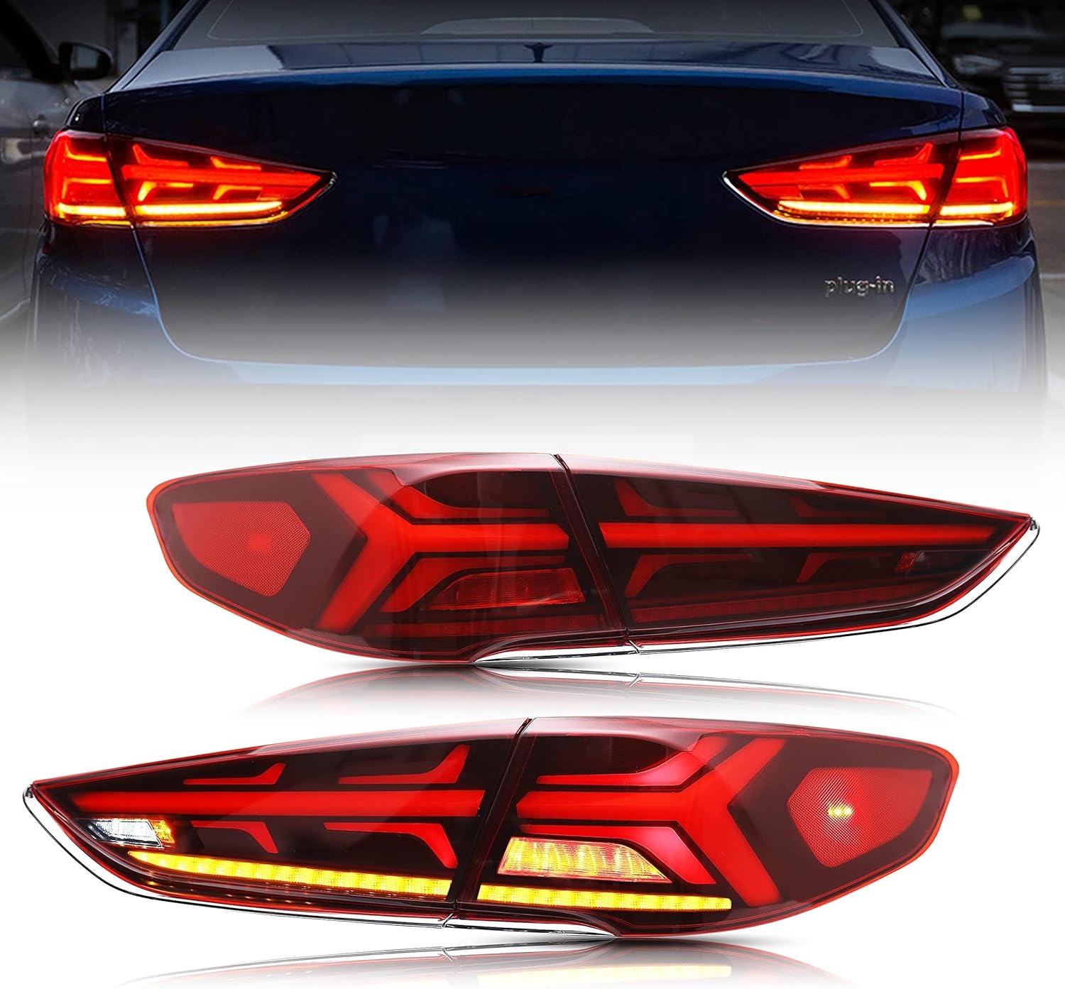 inginuity time LED Tail Lights For Hyundai Sonata 2018 2019 Start-up Animation DRL Sequential Indicator Rear Lamp Assembly (RED)