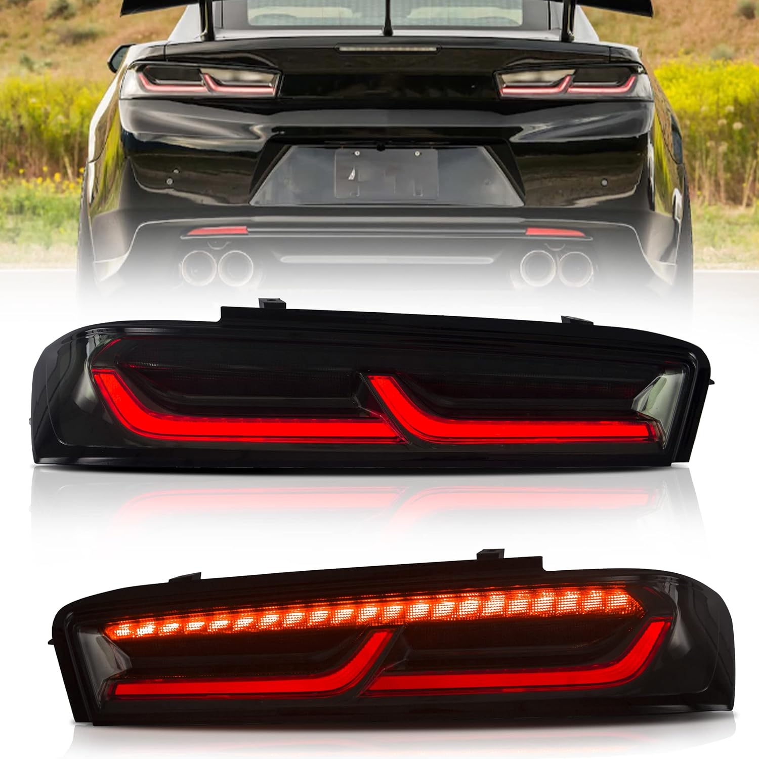 VLAND Taillights Assembly Fit for 2016-2018 Chevrolet Camaro 6th Gen(LS, LT, RS, SS, ZL1), Plug-and-play, Red Turn Signal, Smoked