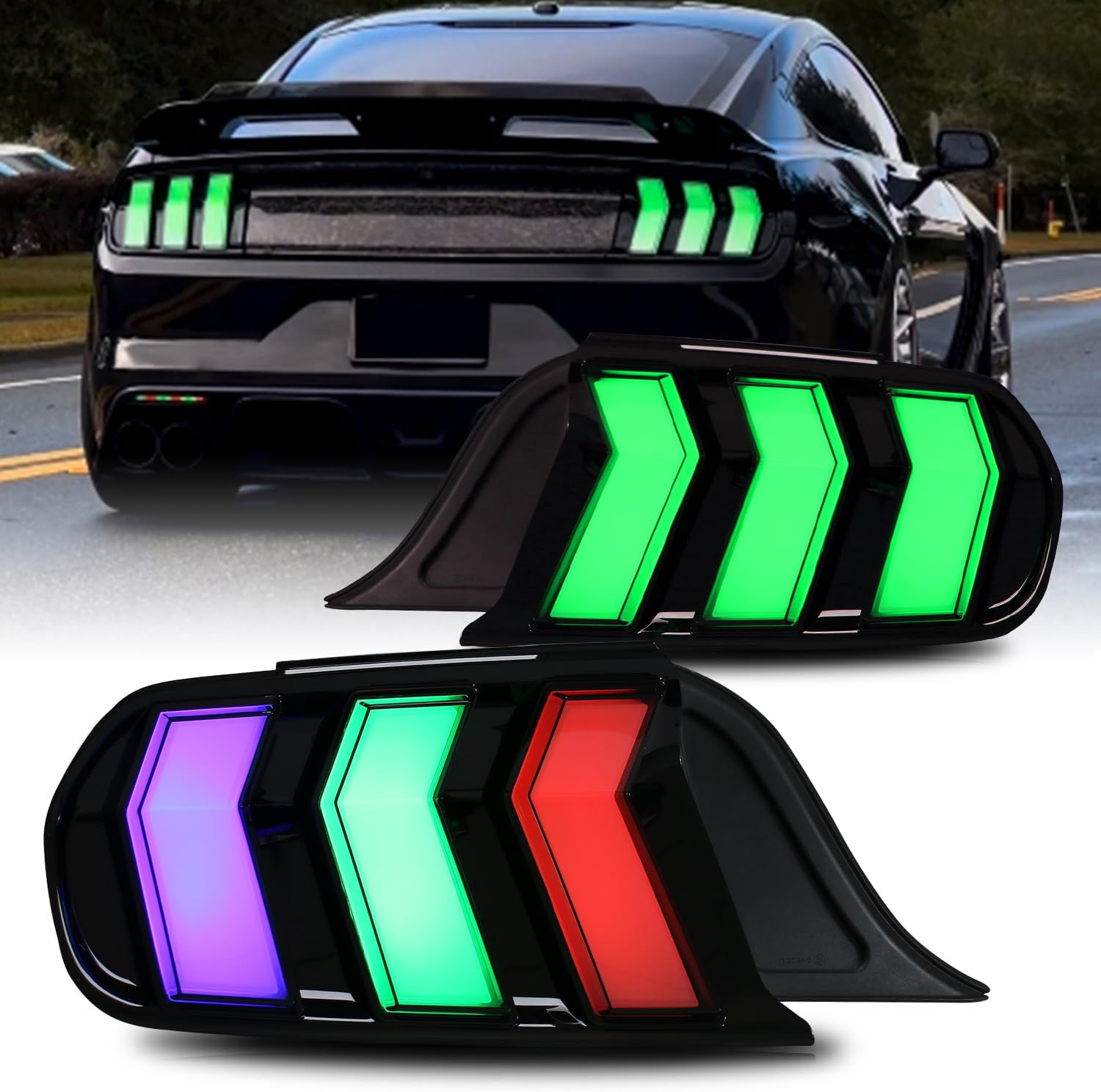 HCmotion LED Tail Lights for Ford Mustang Euro 2015-2023 (6 Lighting Modes), Start UP Animation with Sequential Turn Signal Rear Lamp Kit Assembly (Smoked-RG)