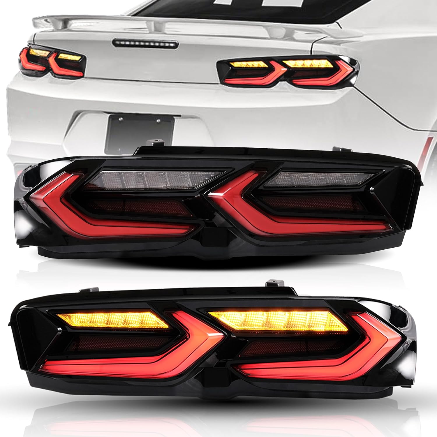 VLAND Led Taillights Compatible For 6th Gen Camaro Coupe 1SS 2SS 2LT 1LT 2LS ZL1(Not Fit Z/28) 2016-2018 with Amber Sequential Signal Lights, Plug and Play Upgraded Red