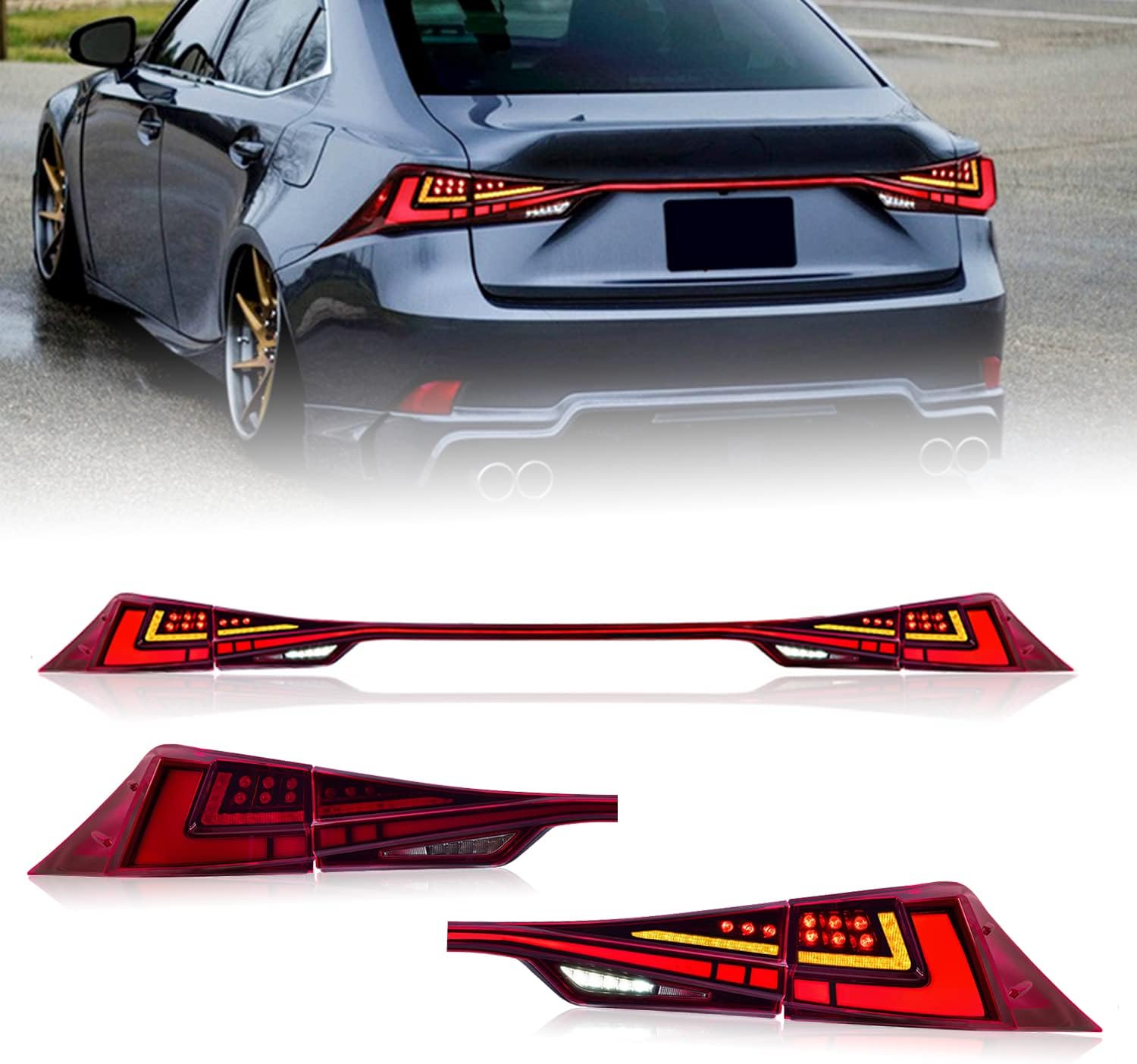 HCmotion LED Tail lights & Tailgate Light Assembly for 2014-2020 Lexus IS250 IS200T IS350 IS300,Taill Lamp With Start UP Animation DRL light&Sequential Turn Signal,Reverse Lights (Red)