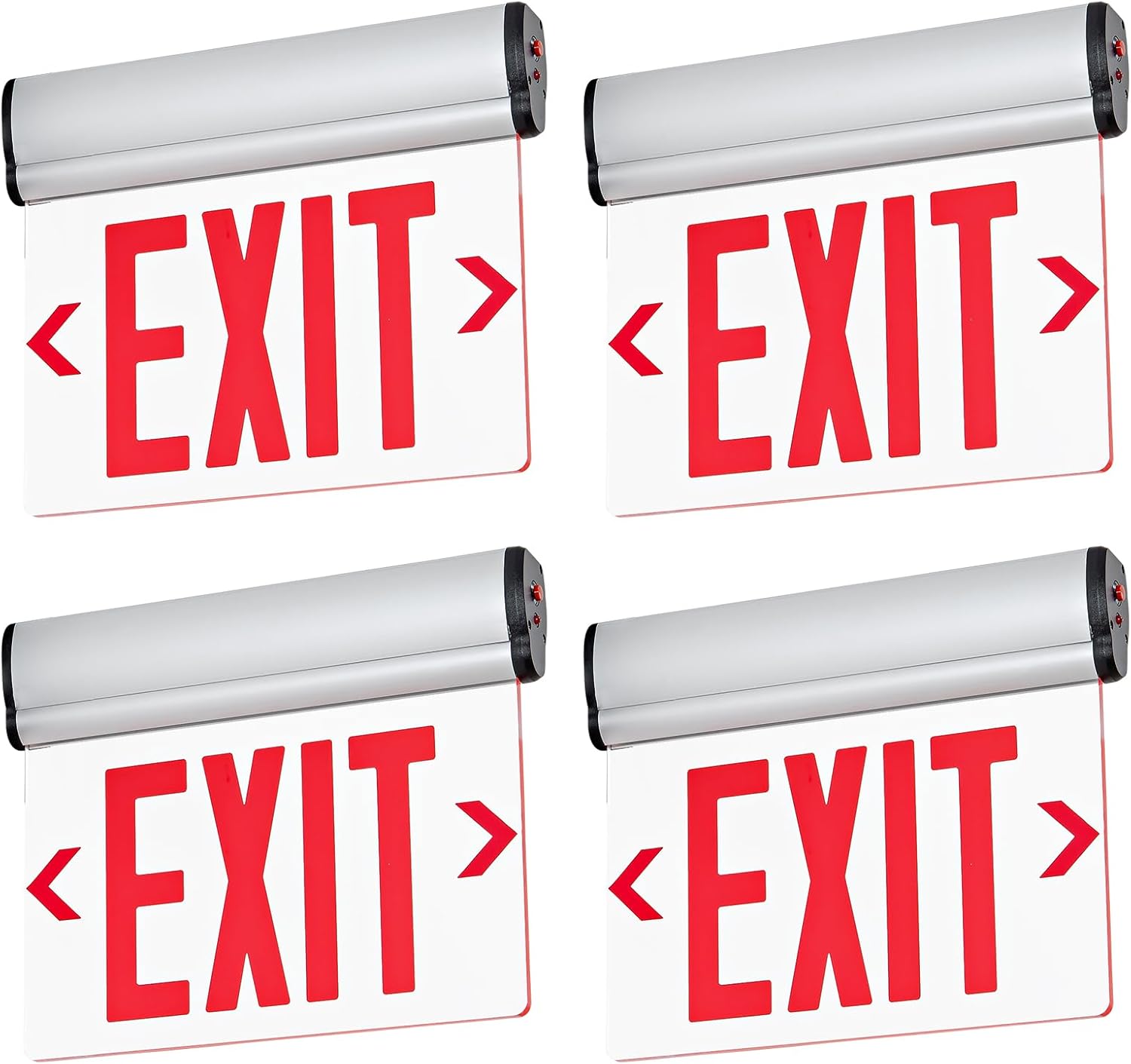 TANLUX Red Exit Signs for Business, LED Edge Lit Exit Sign, UL 924, Hardwired Emergency Exit Lights with Battery Backup, Aluminum Housing with Rotating Acrylic Clear Panel, AC 120/277V, 4 Pack