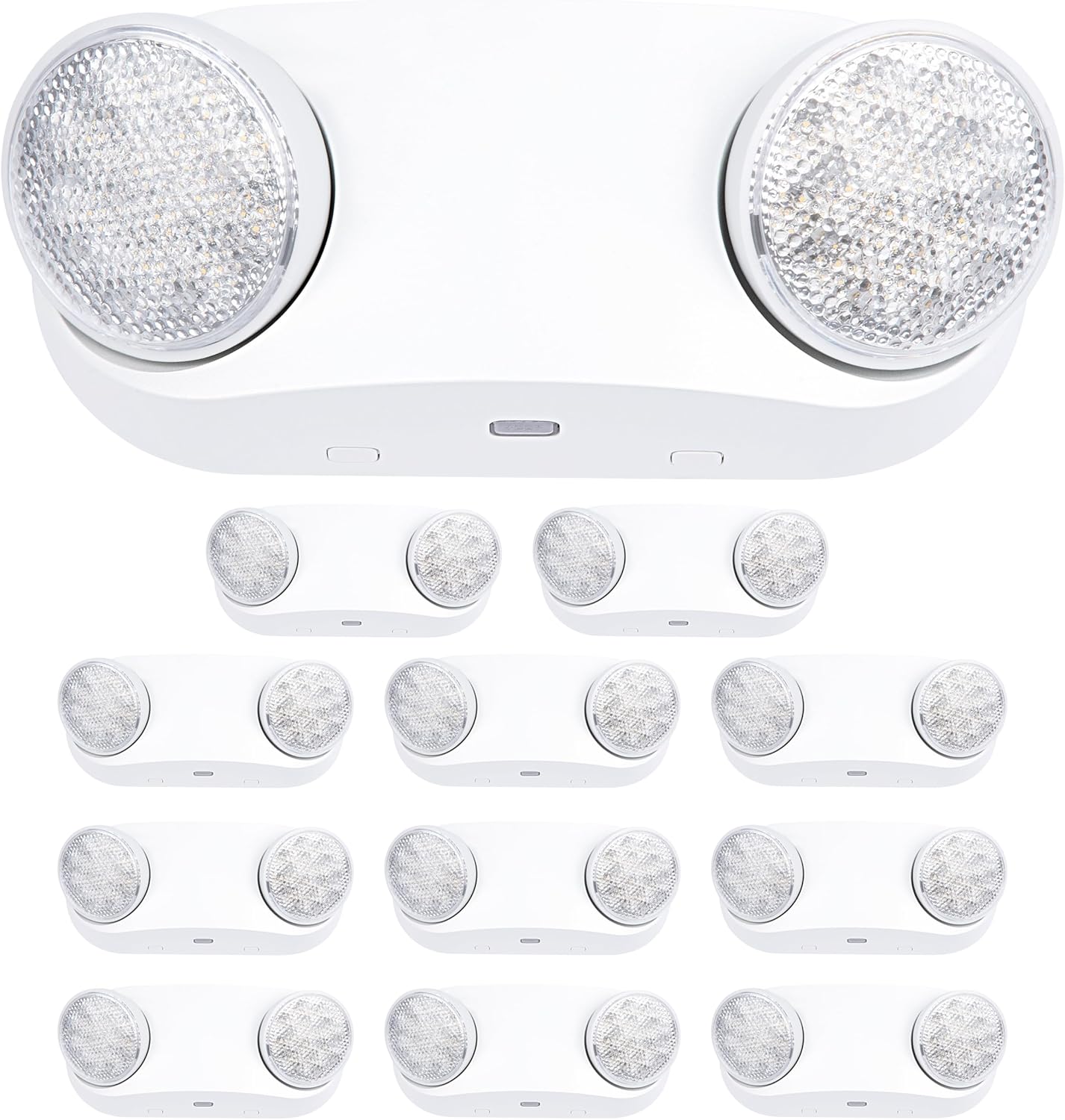 GRUENLICH LED Emergency Light with Battery Backup, 2 Adjustable Bug Eye Heads Lights, US Standard, AC 120-277V, Hardwired Commercial Emergency Exit Light for Business, 12-Pack