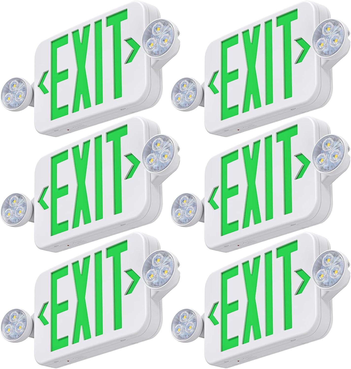 Led Exit Sign Emergency Light Combo Adjustable Two Head,Double Sided and Battery Backup Exit Light,Green Letter Hardwired Emergency Exit Sign,AC 120/277V,UL Listed,Ceiling&Wall Mount (6 Pack)