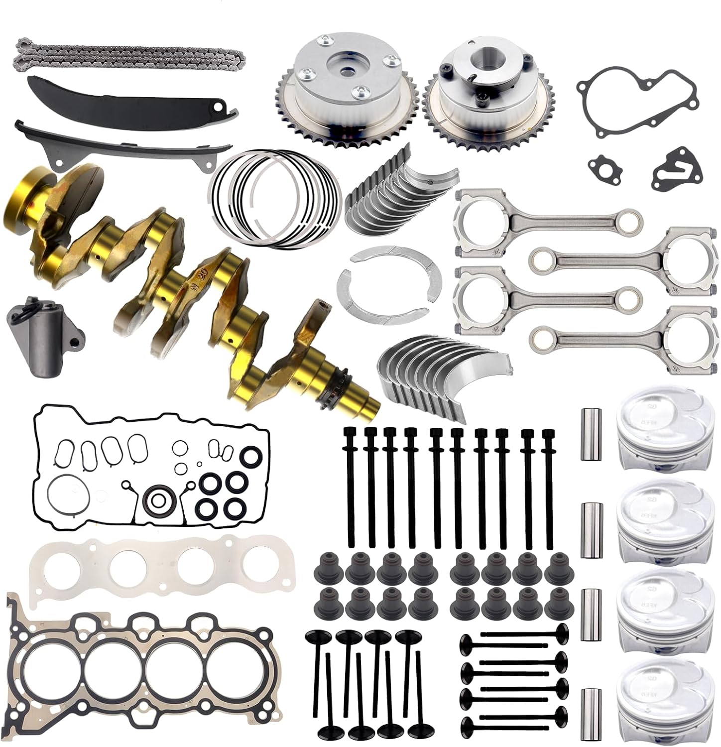 G4NC 2.0L Engine Rebuild Overhaul Kit w/Crankshaft/Timing Chain Kit& Con Rod/Pistons for Kia Sportage Hyundai Sonata Santa Fe Sport 2.0L G4NC Replace 23110-2E501 23510-2E001 23040-2E000