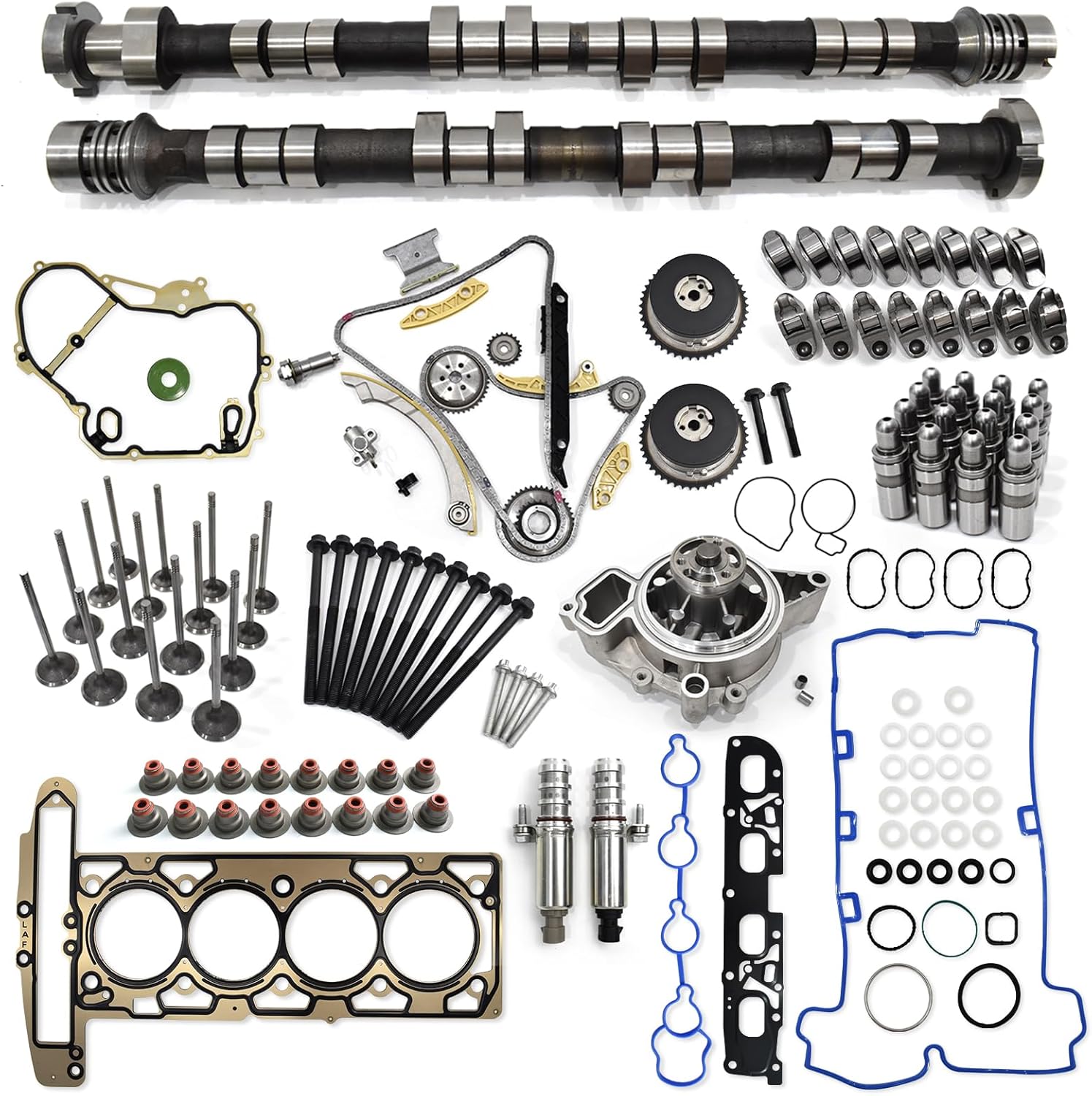 2.4 Camshaft kit with VVT Valve, Water Pump, Head Gasket Set, VCT Selenoid Actuator Gear for Chevy Equinox GMC Terrain Buick Lacrosse 2011-2017 LAF LUK LEA 12656486 12604896 12634207