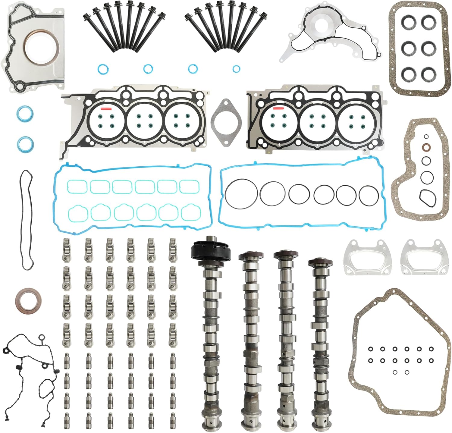 3.6 Engine Camshafts kit Head Gaskets Set w/Rocker Arms Valve Lifters set Fit for Chrysler 200 300 Dodge Durango Challenger Jeep Wrangler Ram 1500 3.6L V6 Pentastar 2011-2016 5184380AG 5184378AG