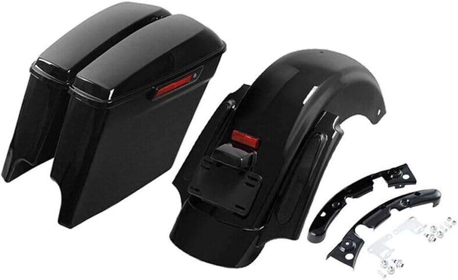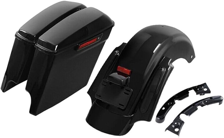 5" Stretched Saddlebags Rear Quarter Road Fits Flhx Black Smoked-Lens Red-Light