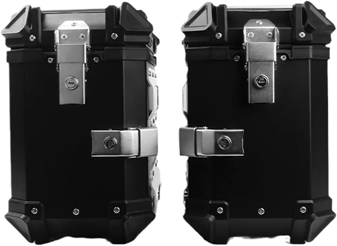 38L Aluminum Universal Motorcycle Side Box Moto Saddlebags Right Hiden Saddle Bags Motorcycle Travel Luggage Storage Case(38L Black (1 pair))