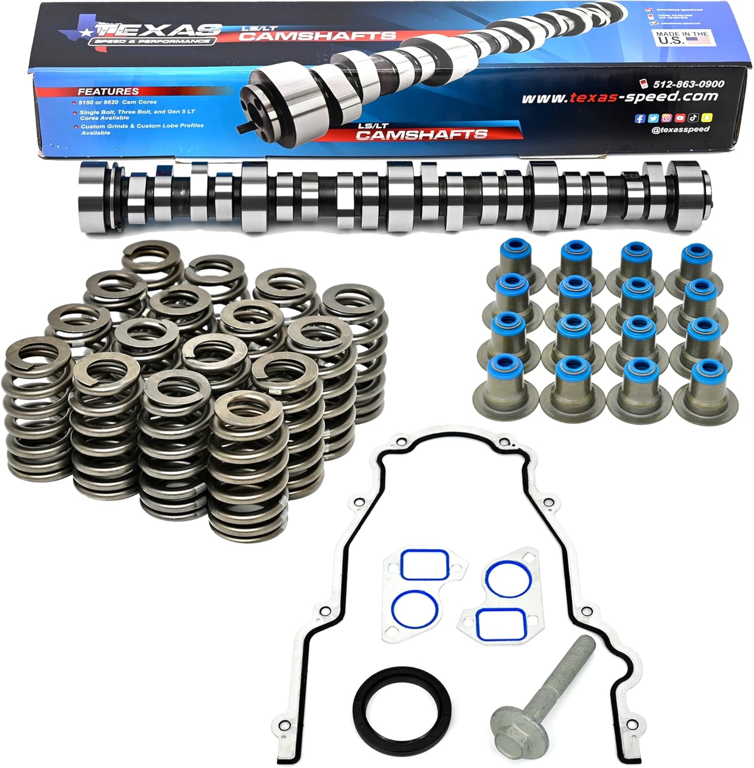 Texas Speed TSP Stage 2 Low Lift LS Truck Camshaft Kit | Fits 1999-2013 4.8L 5.3L 6.0L 6.2L LS Engines | Kit Includes Springs OEM Style Hat Seals & Gasket Install Kit