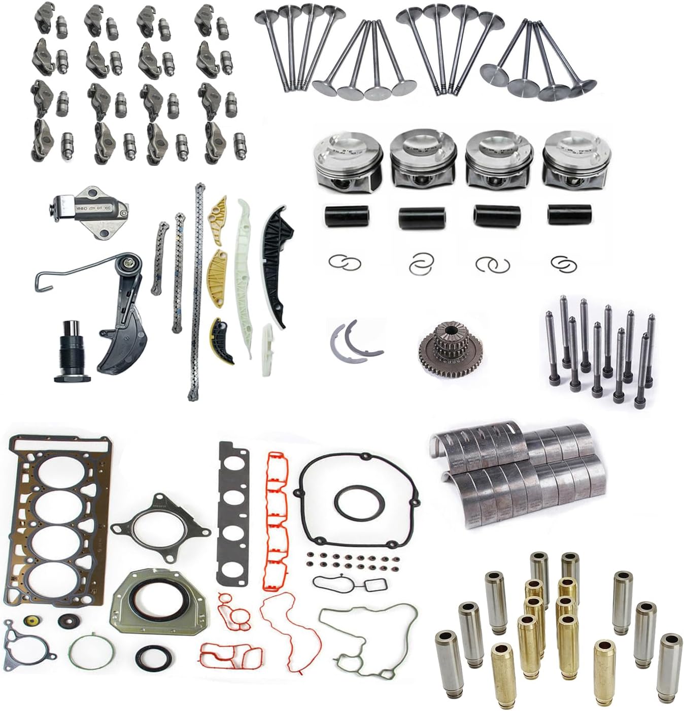 EA888 Engine Timing Chain Kit & Rebuild Overhaul Kit & Rocker Arm Valve Lifters &23mm Piston Kit Fit for Volkswagen Tiguan Audi Q3 Q5 2.0T