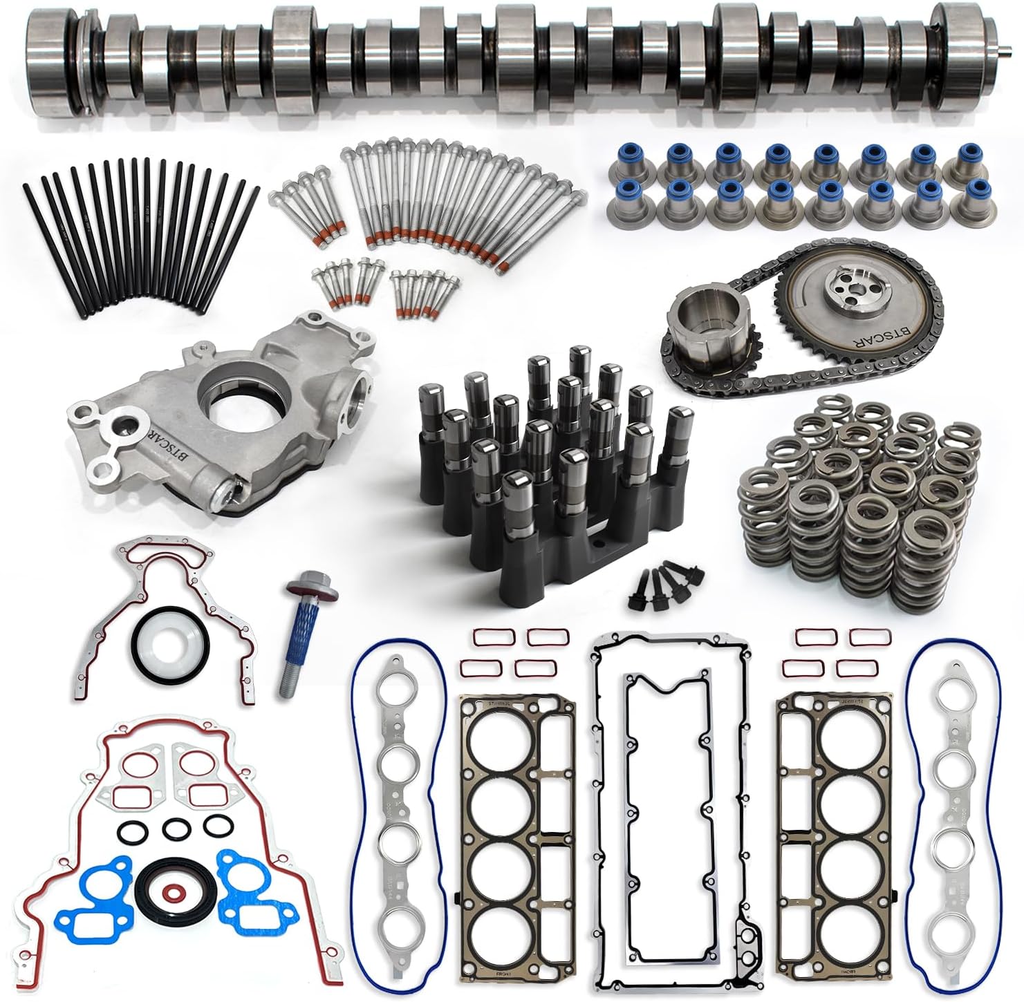 E1840P Sloppy Stage 2 Camshaft Lifters Kit with Head Gaskets | Springs | Pushrods | Seals | Bolts Set | Oil Pumps | Chain Compatible with 1997-2006 LS 4.8/5.3/5.7/6.0 GMC Chevrolet