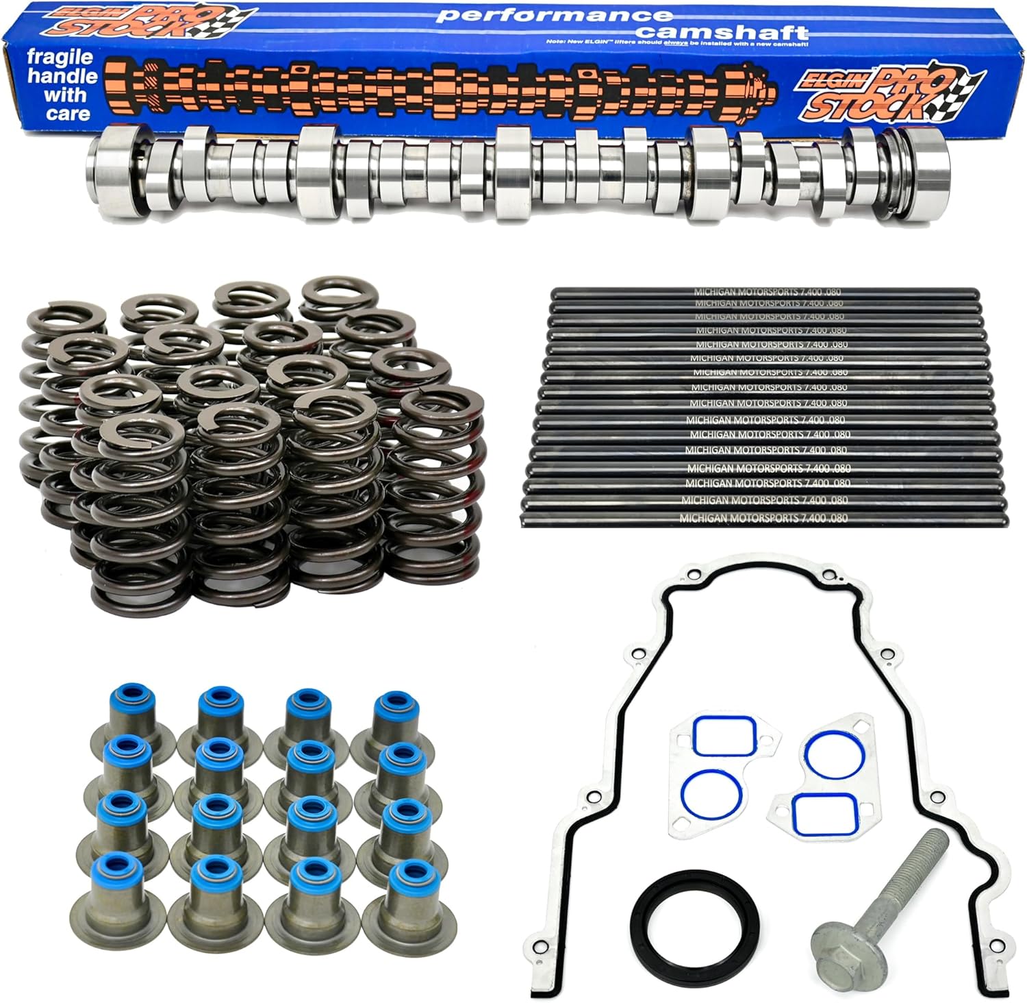 Sloppy Mechanics Stage 2 LS Camshaft Kit - Fits 4.8L 5.3L 5.7L 6.0L 6.2L LS1 LS2 LQ4 LQ9 L33 Elgin 1840-P Cam (Cam, .600" Springs, Hat Seals, Pushrods, Gaskets)
