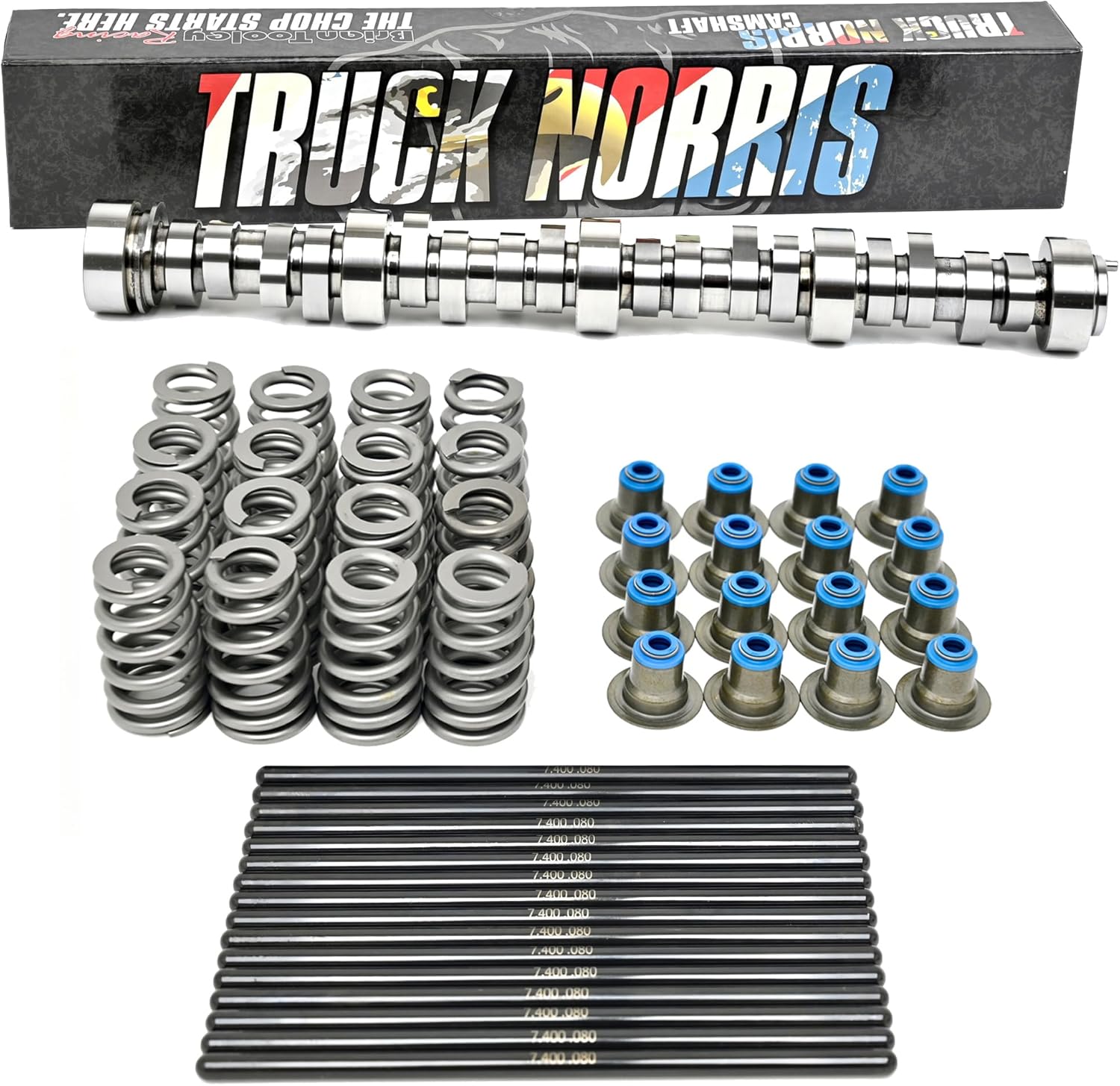 BTR Brian Tooley Racing Truck Norris Camshaft, LS Beehive Spring Kit, 7.400" Chromoly LS Pushrods & OEM Style Hat Valve Seals -fits Gen 3/4 LS 4.8 5.3 5.7 6.0 6.2 LS1 Vortec V8 Engines