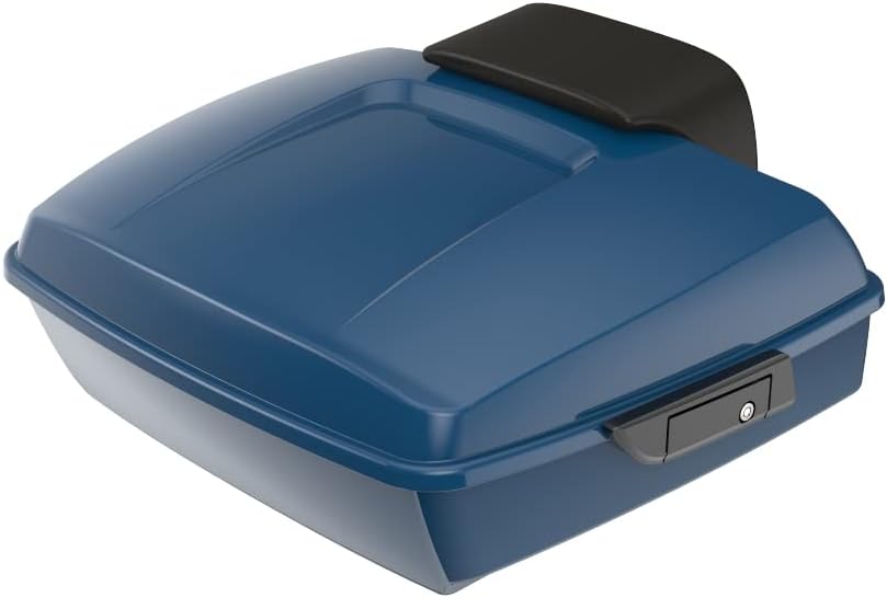Motorcycle Chopped Tour Trunk Pack Fit for 2014+ Harley Touring FLH FLHX FLHR - Reef Blue, Black Latch Hinges Backrest Pad