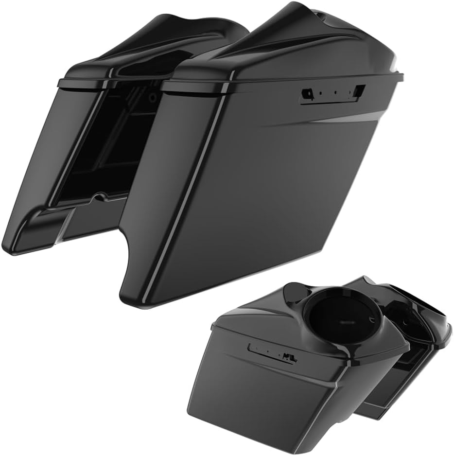 Advanblack Harley Saddle Bags Vivid Black Stretched Saddlebags with Speaker Lids Fit for 2014+ Harley Touring FLH (8 inch Speaker Lids)