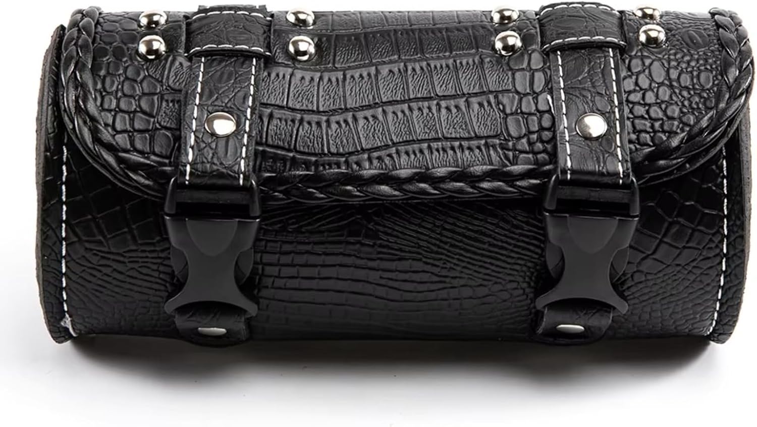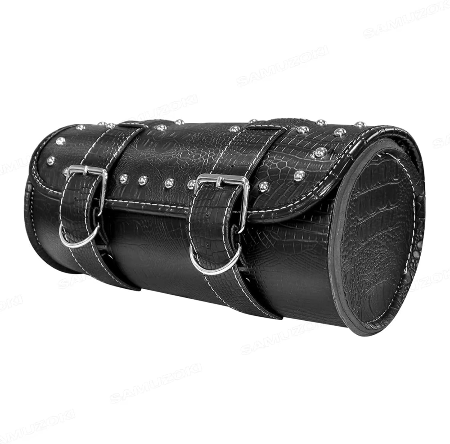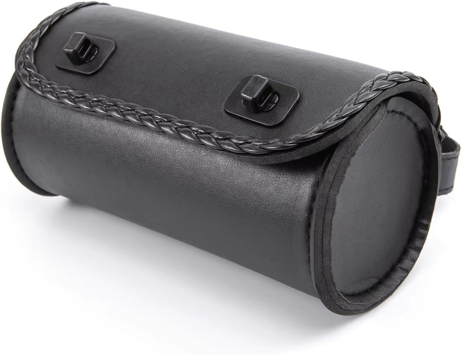 Universal Motorcycle PU Leather Fork Bag Saddlebags Handlebar Bag Sissy Bar Storage Tool Bag For Honda For Kawasaki For Suzuki For Yamaha(black)